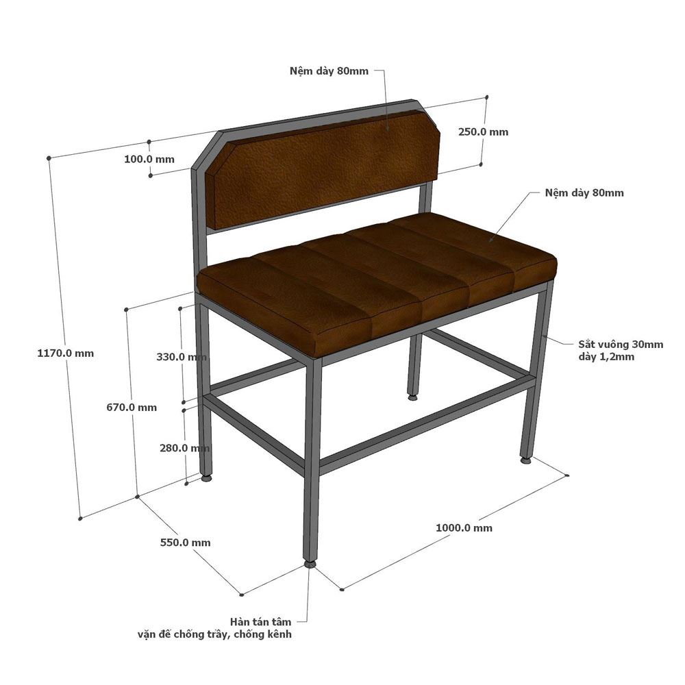 Thiết kế ghế băng dài còn giúp tối ưu hóa diện tích sử dụng, tạo không gian ngồi chung ấm cúng cho nhóm bạn bè hoặc gia đình