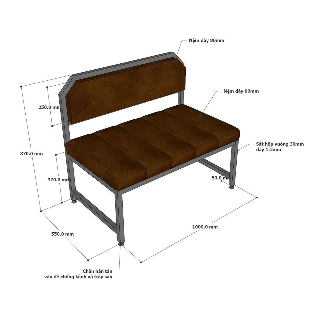 Ghế băng GBD045 hứa hẹn sẽ là điểm nhấn độc đáo, nâng tầm đẳng cấp cho quán cafe, nhà hàng hay bar của bạn. Hình khối vuông vắn, mạnh mẽ của khung sắt hộp 1.2mm tạo nên một nền tảng vững chắc cho chiếc ghế. Lớp sơn tĩnh điện cao cấp không chỉ bảo vệ bề mặt sắt khỏi sự oxy hóa mà còn tạo nên một lớp áo bóng mịn, sang trọng, dễ dàng vệ sinh.