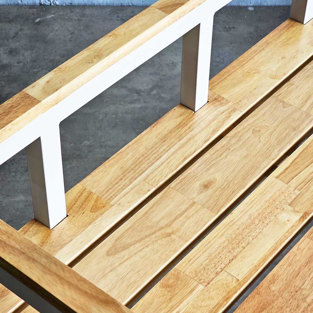 Ghế băng dài GBD036 sở hữu thiết kế đơn giản nhưng tinh tế và hiện đại. Ghế có phần mặt gỗ được làm từ các thanh gỗ ghép lại với nhau, tạo thành các đường rãnh trang trí đẹp mắt. Thiết kế này không chỉ mang lại tính thẩm mỹ cao mà còn giúp cho ghế có khả năng thoáng khí, mát mẻ, thoải mái khi ngồi. Khung chân ghế được làm từ sắt hộp 25x25mm rất chắc chắn, đồng thời giúp tạo nên đường nét hiện đại.