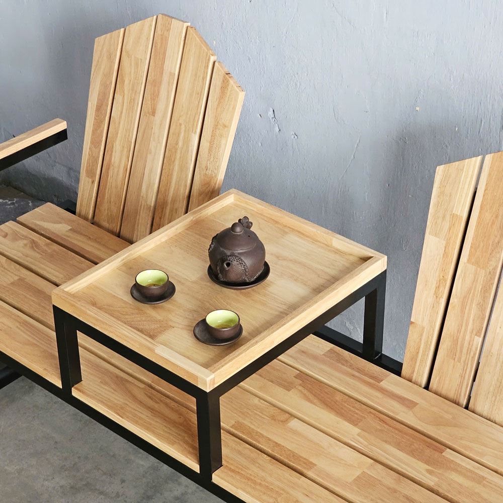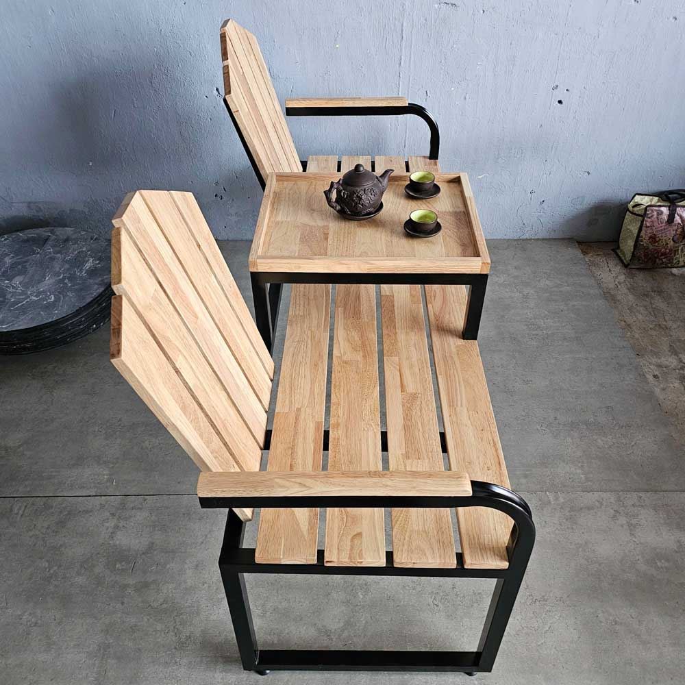 Tay tựa thiết kế bo cong, tạo cảm giác êm ái khi tỳ tay, mang đến tư thế ngồi thoải mái nhất. Đặc biệt, khay trà nhỏ gọn ở giữa ghế là nơi lý tưởng để bạn cùng người thân thưởng thức những tách trà ấm áp, trò chuyện và thư giãn sau những giờ làm việc căng thẳng. Mẫu ghế bằng này không chỉ phù hợp với không gian phòng khách, ban công mà còn là lựa chọn tuyệt vời cho các quán cafe, nhà hàng, tạo nên điểm nhấn ấn tượng và thu hút mọi ánh nhìn