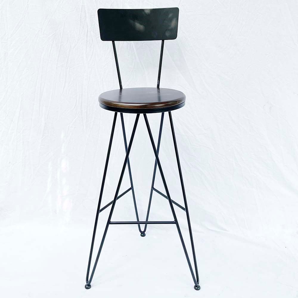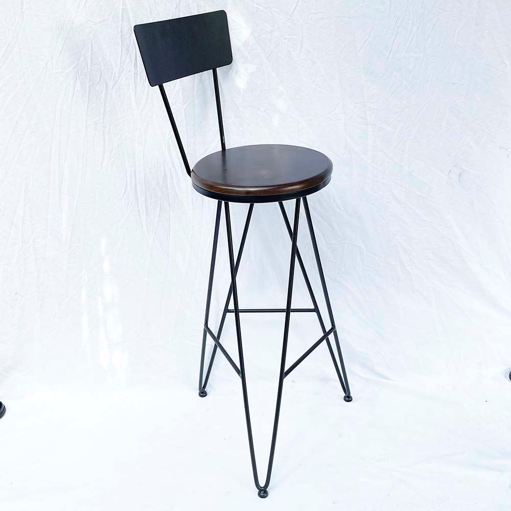 Ghế Bar chân sắt 3 chân chữ V có tựa lưng sắt GBAK005