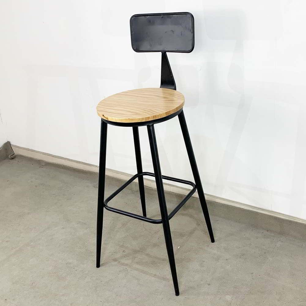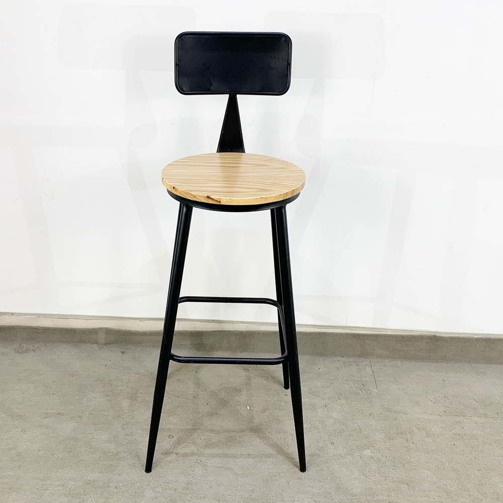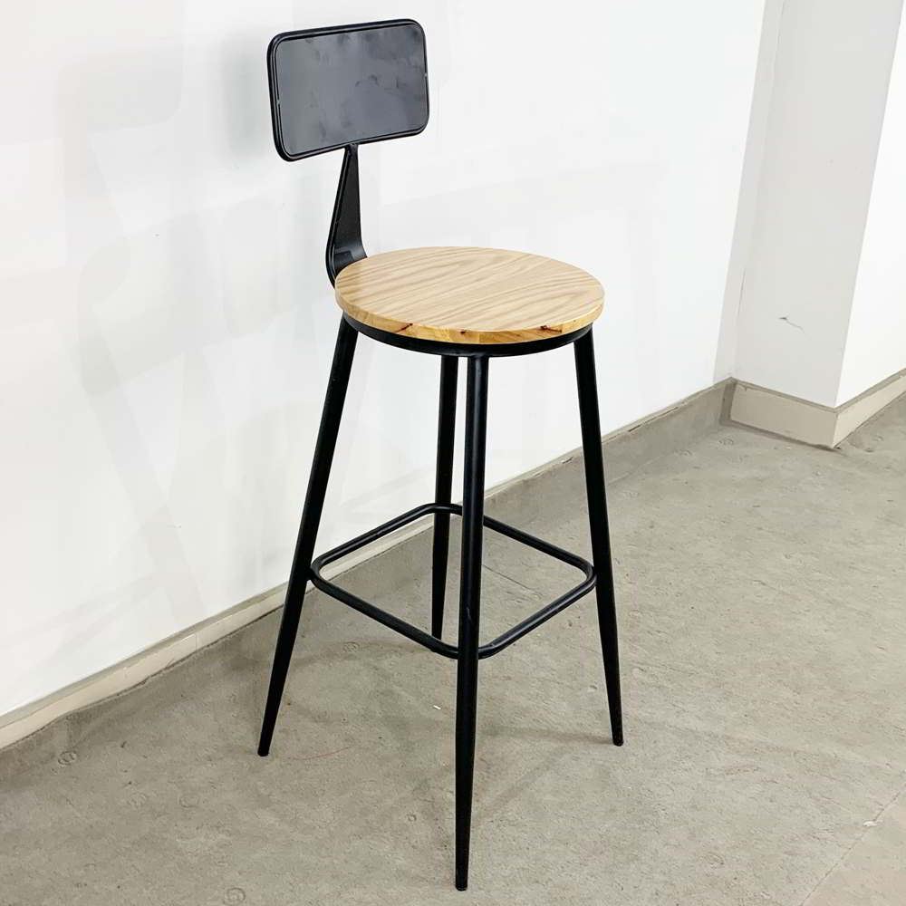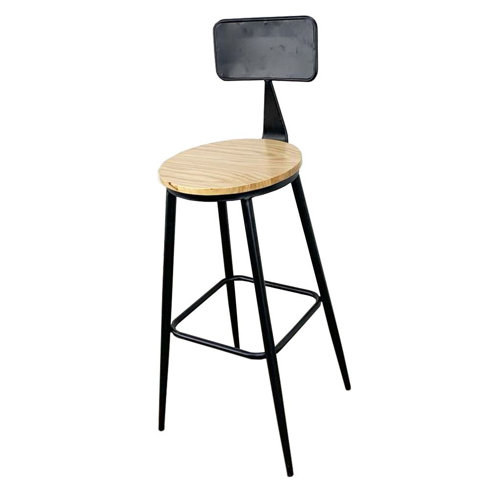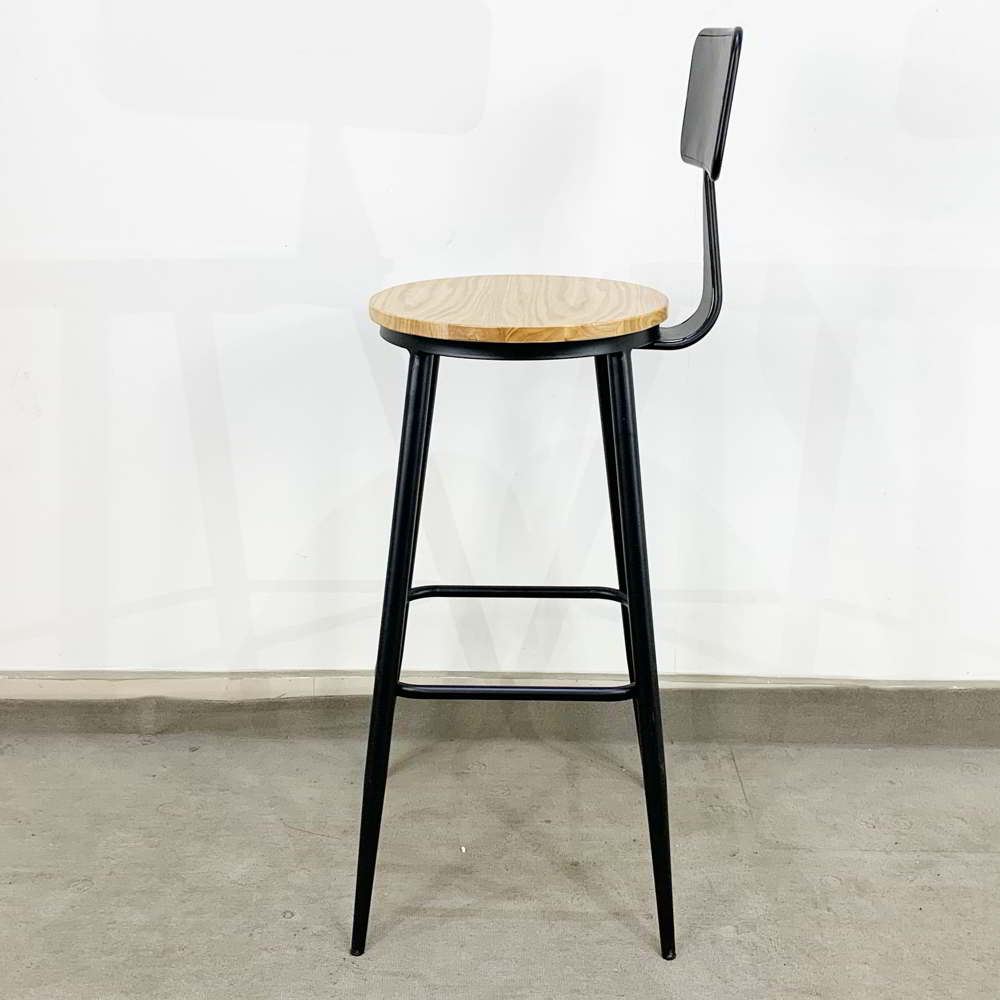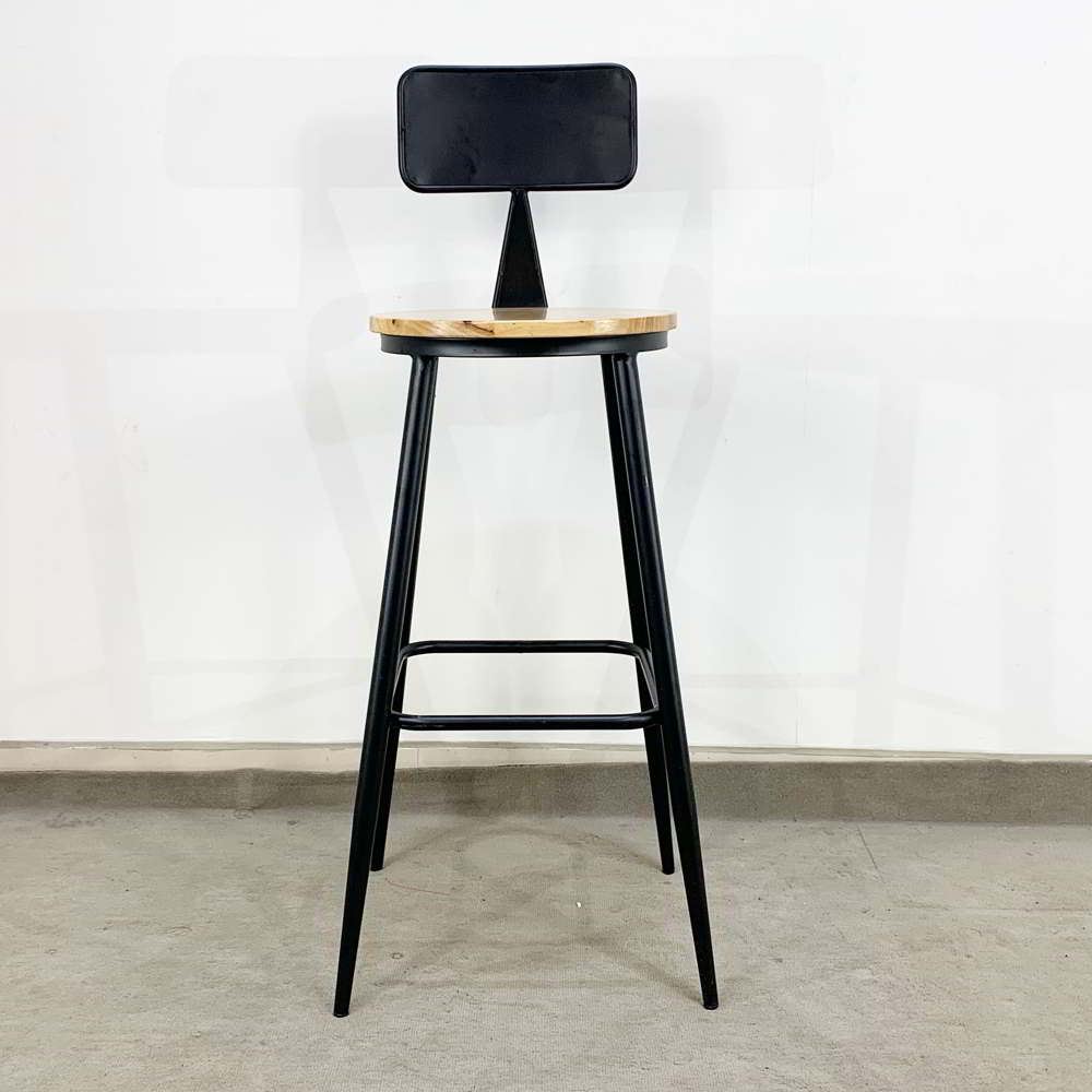 Ghế Bar có lưng tựa chân sắt sơn tĩnh điện mặt ghế màu gỗ tự nhiên