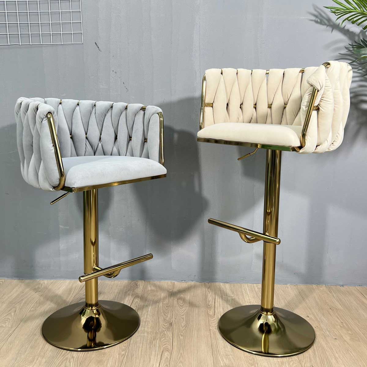 Chân ghế bar có thể nâng hạ để điều chỉnh độ cao phù hợp, và còn có khả năng xoay 360 độ, giúp người ngồi dễ dàng di chuyển và tận hưởng không gian xung quanh. Với chất liệu được làm bằng sắt mạ màu vàng, không chỉ mang lại vẻ đẹp sang trọng mà còn đảm bảo độ bền và độ ổn định cho sản phẩm.
