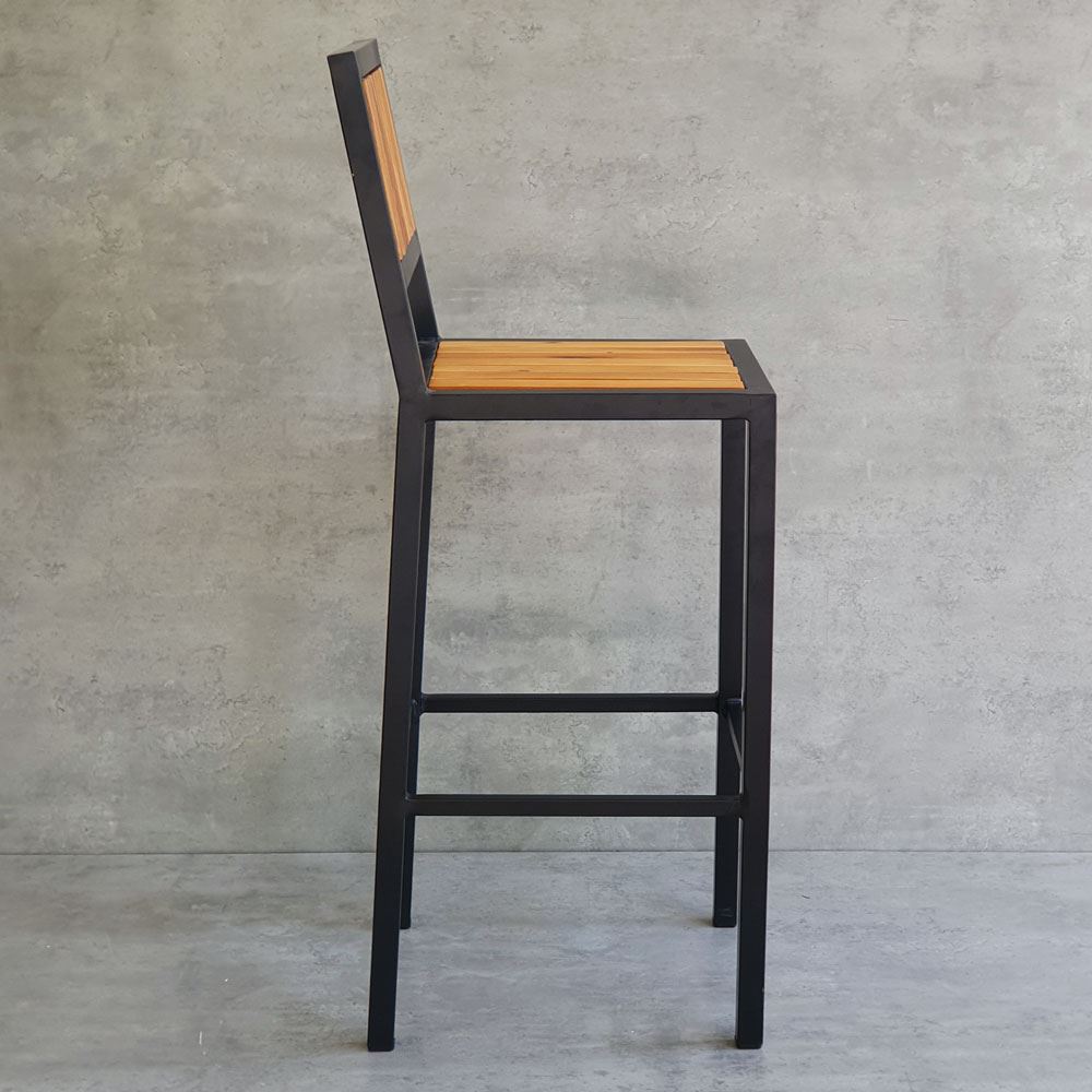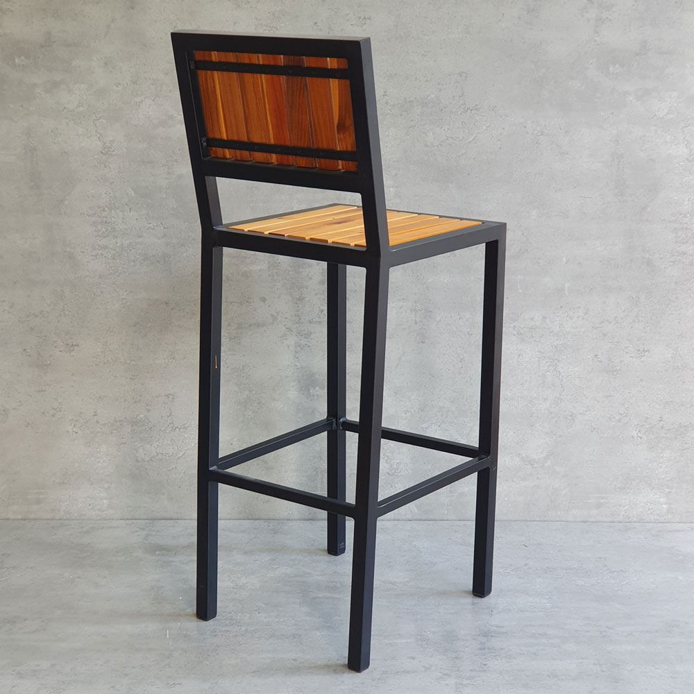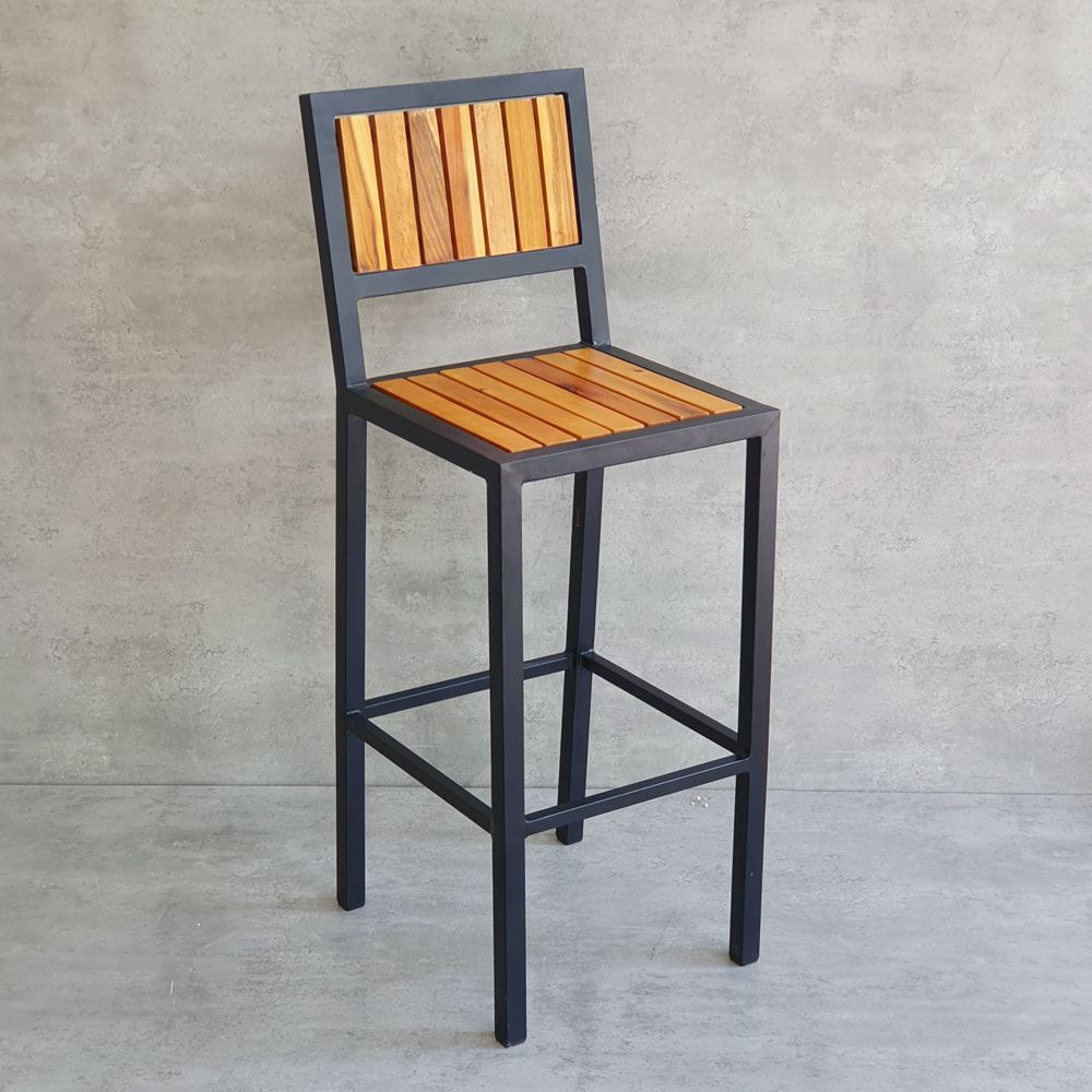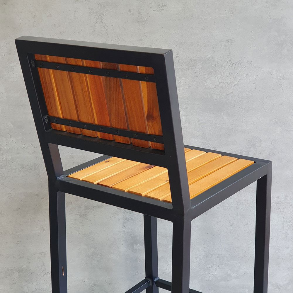 Ghế bar có tựa lưng GBAK003 có kết cấu vô cùng vững chắc nhờ phần khung ghế được làm từ sắt hộp vuông 30mm loại dày 1.2mm, bề mặt sắt được phủ lớp sưn tĩnh điện chống các ăn mòn hoá học, đảm bảo độ bền cao cho sản phẩm. Lưng và mặt ghế gỗ Tràm được xử lý và hoàn thiện PU bề mặt sáng, màu sắc gỗ tự nhiên mang vẻ đẹp ấm áp, gần gũi kết hợp với khung chân sơn tĩnh điện màu đen phù hợp với mọi không gian có concept khác nhau.