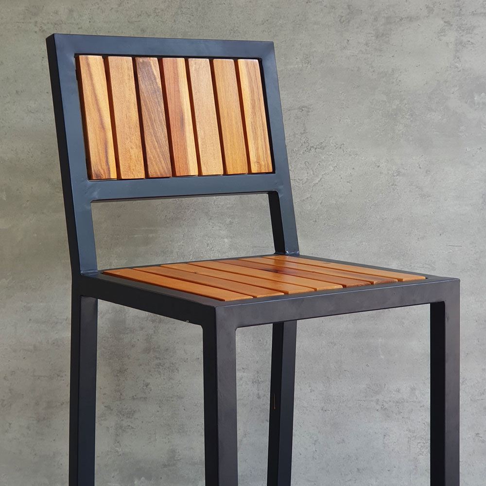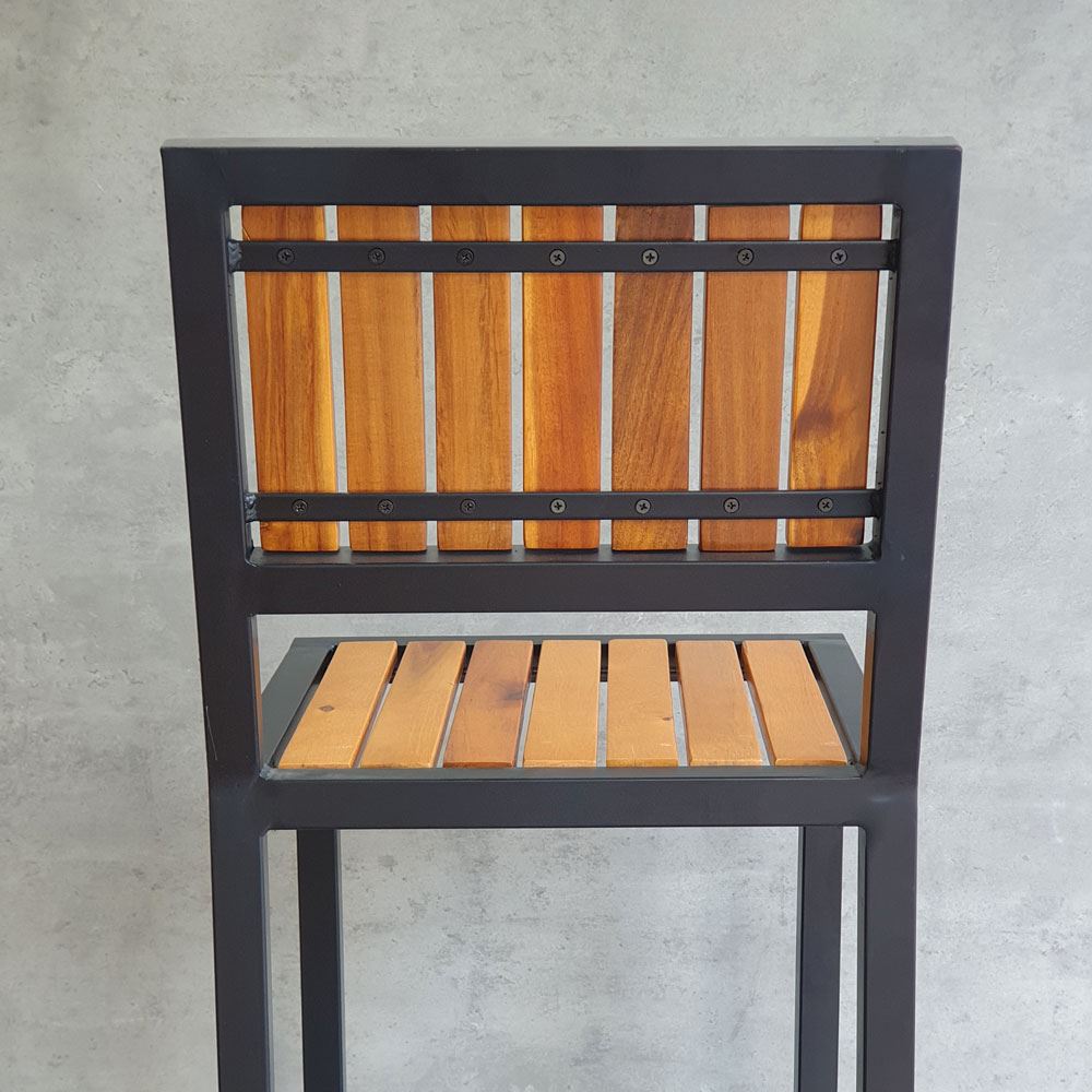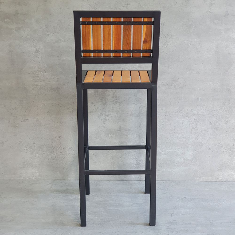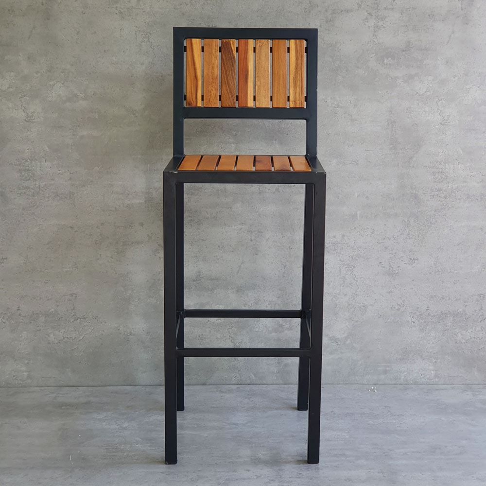 Ghế bar có tựa lưng GBAK003 có kết cấu vô cùng vững chắc nhờ phần khung ghế được làm từ sắt hộp vuông 30mm loại dày 1.2mm, bề mặt sắt được phủ lớp sưn tĩnh điện chống các ăn mòn hoá học, đảm bảo độ bền cao cho sản phẩm. Lưng và mặt ghế gỗ Tràm được xử lý và hoàn thiện PU bề mặt sáng, màu sắc gỗ tự nhiên mang vẻ đẹp ấm áp, gần gũi kết hợp với khung chân sơn tĩnh điện màu đen phù hợp với mọi không gian có concept khác nhau.
