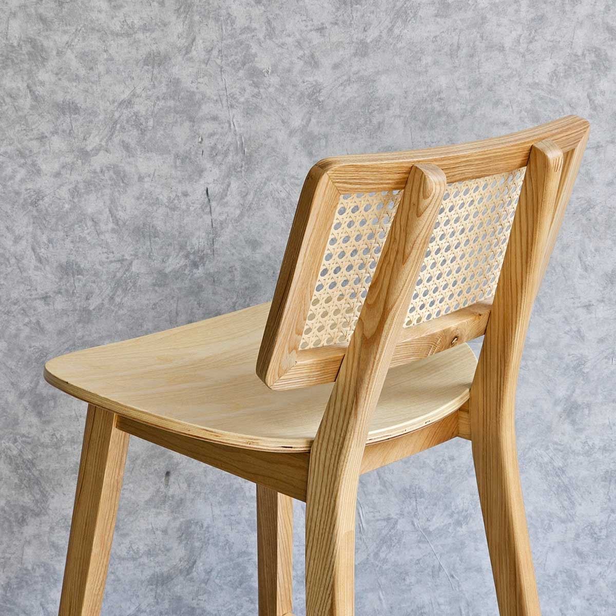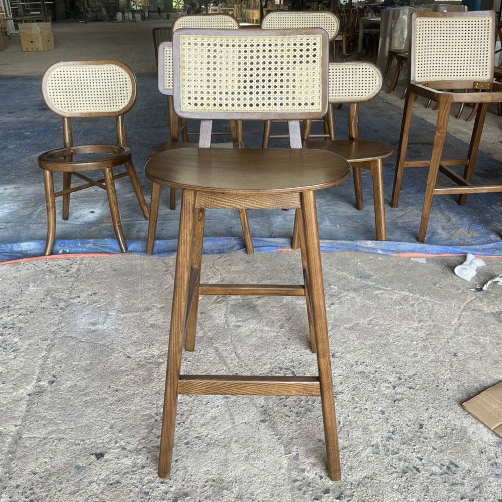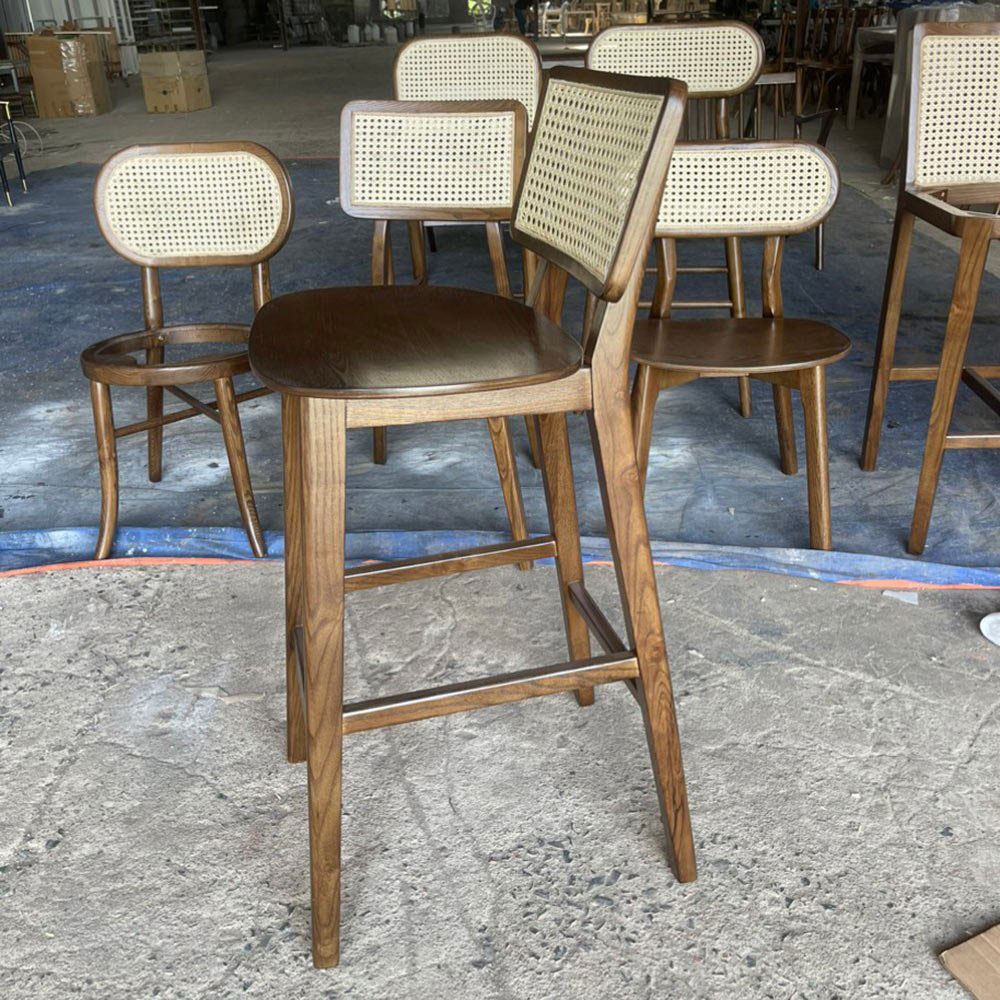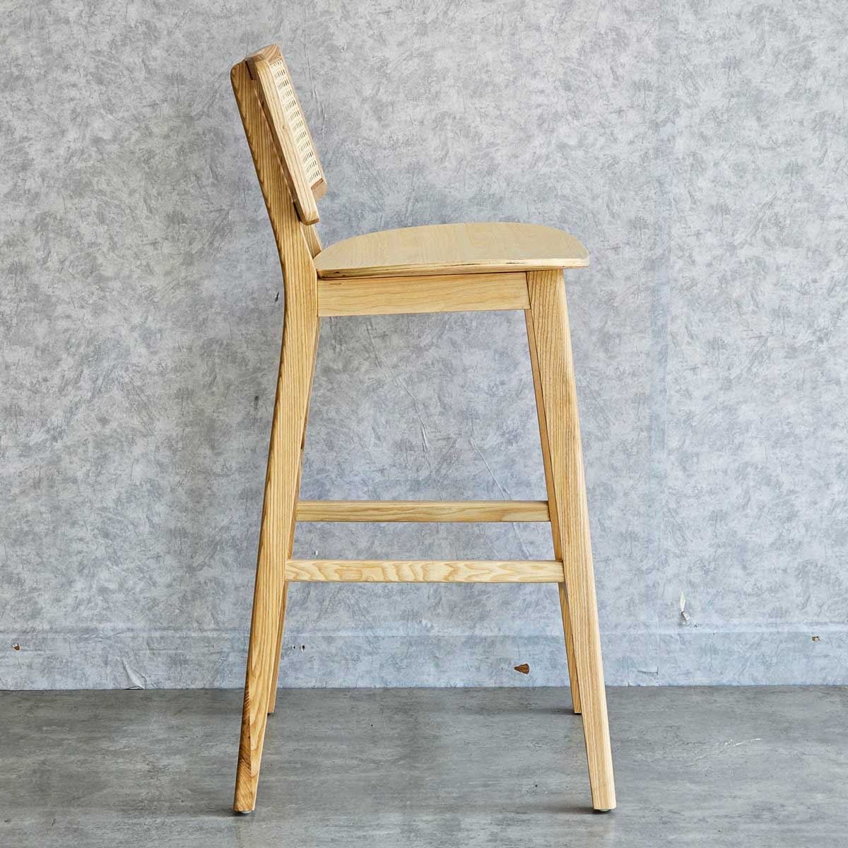 Ghế bar GBSK014 được làm bằng chất liệu gỗ tần bì, một loại gỗ tự nhiên có độ cứng rất cao, vân gỗ đẹp mắt và tươi sáng. Đây là loại gỗ được nhập khẩu, đã được xử lý sấy khô, bề mặt phủ PU chống thấm, giúp tăng tính thẩm mỹ cũng như đảm bảo sự bền bỉ trong quá trình sử dụng. Với độ cứng cao, gỗ tần bì mang lại khả năng bám dính keo và ốc vít tốt, dễ dàng đánh bóng bề mặt. Vân ghế gỗ tự nhiên đẹp mắt và sang trọng.