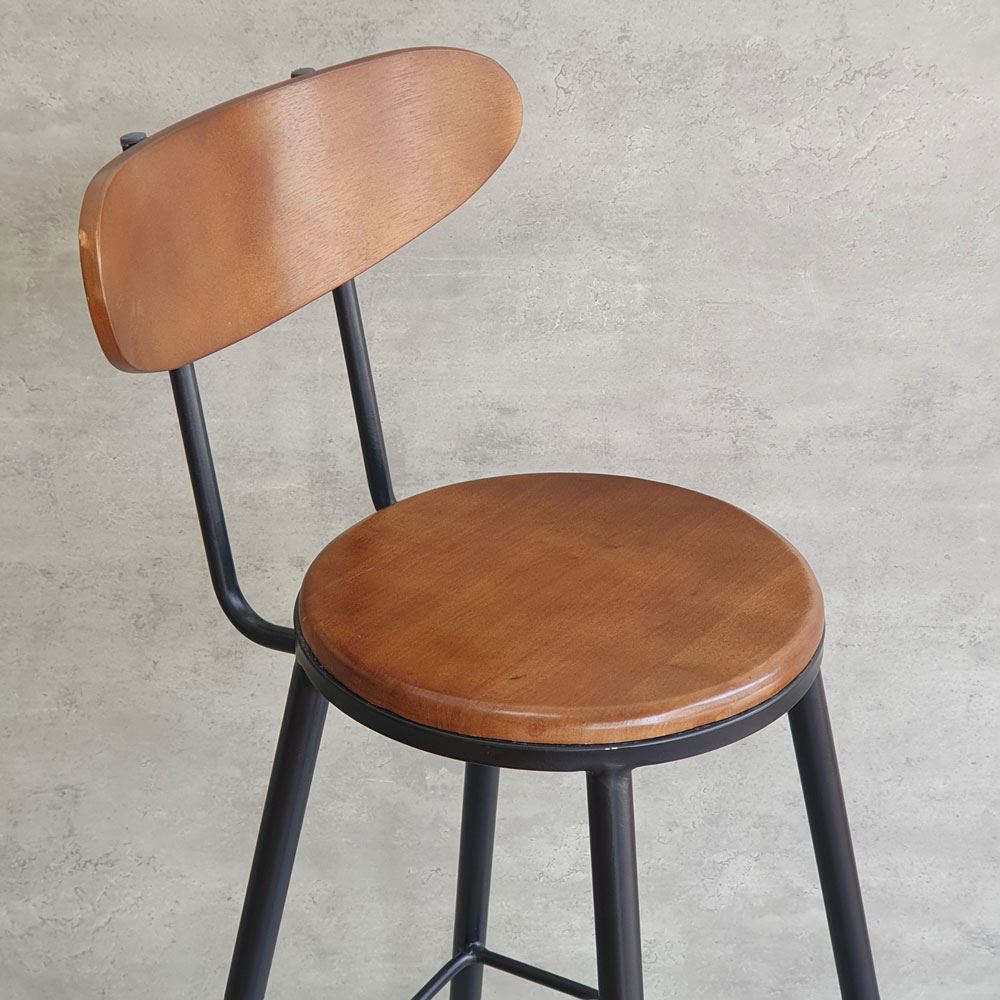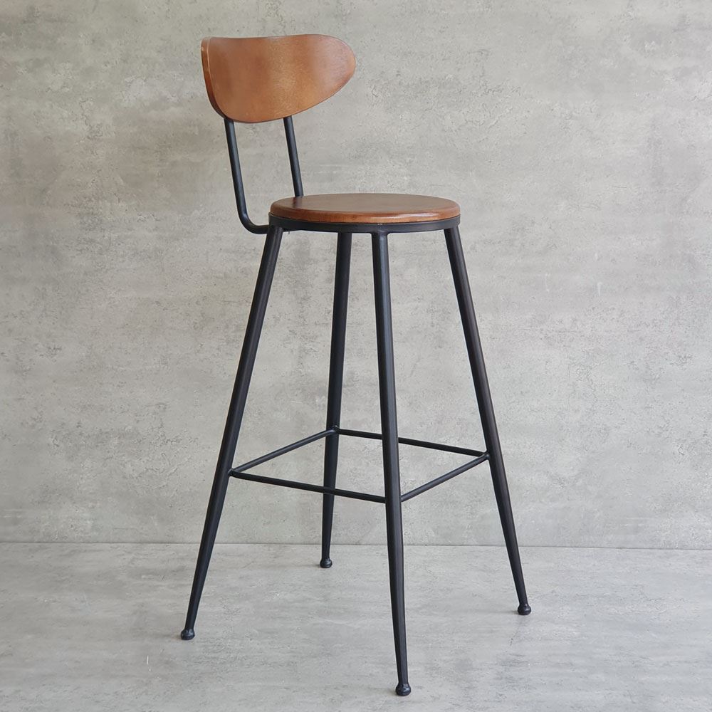 Ghế bar có tựa lưng mặt gỗ màu nâu kết hợp cùng khung chân sắt sơn tĩnh điện độ bền cao