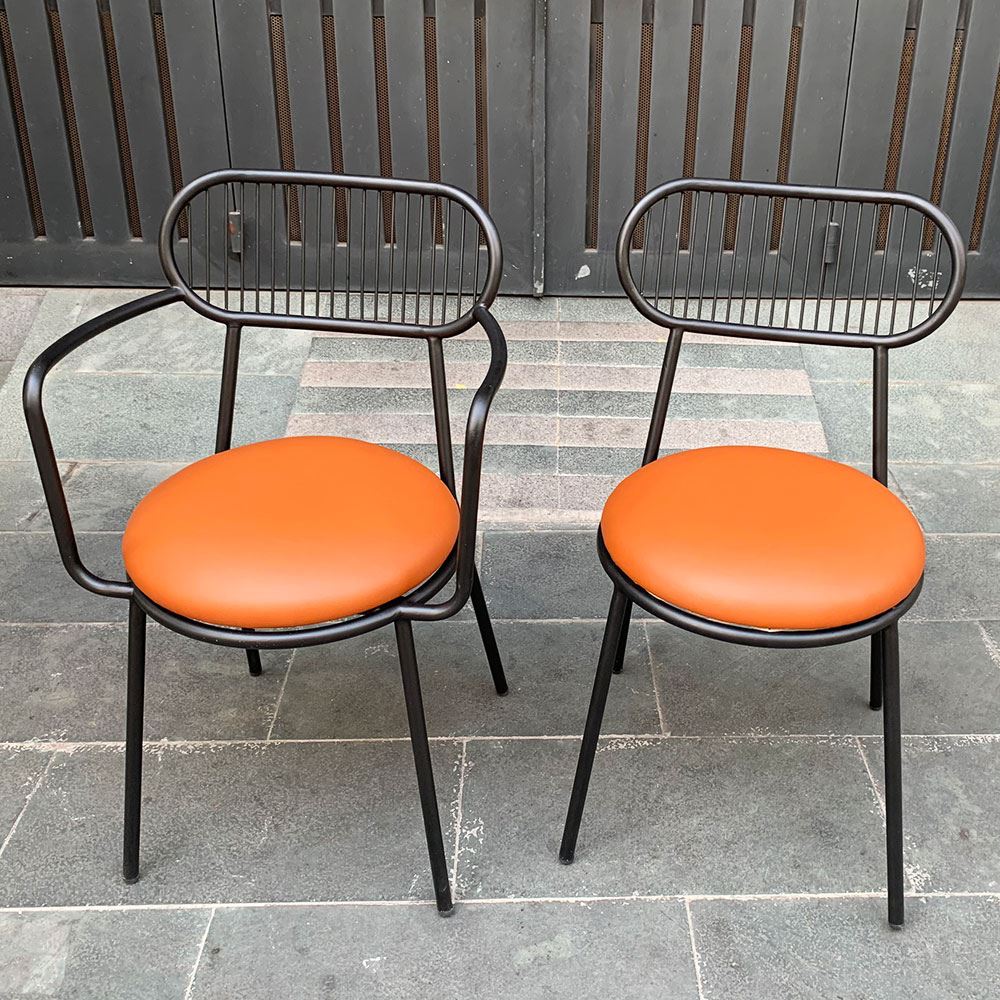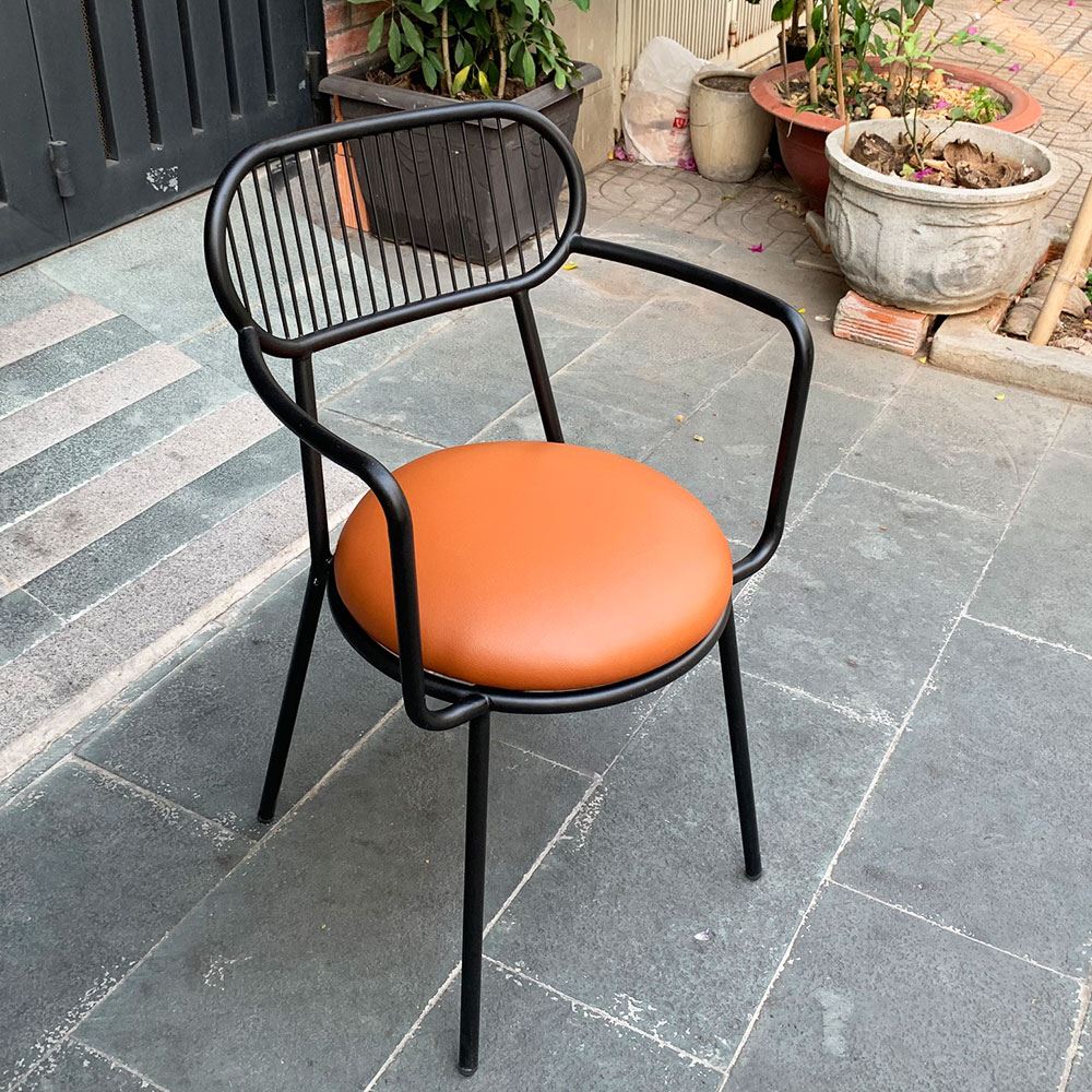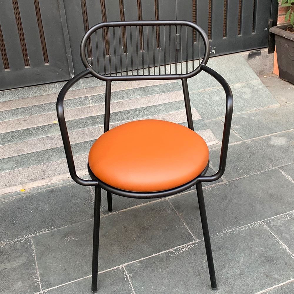 Ghế cafe GCF073 với phần khung lưng và chân ghế được chế tác từ sắt có kiểu dáng thanh mảng nhưng sở hữu khả năng chịu lực tốt, bề mặt phủ lớp sơn tĩnh điện chống rỉ sét đảm bảo độ bền cao. Nệm ghế tròn màu cam tạo điểm nhấn cho không gian thêm phần bắt mắt, nệm ghế êm ái mang đến cảm giác thoải mái cho người sử dụng. Ghế cafe GCF073 sở hữu kiểu dáng hiện đại, bắt phù phù hợp với nhiều không gian khác nhau như các quán cafe, nhà hàng hay ghế ăn nhà bếp.