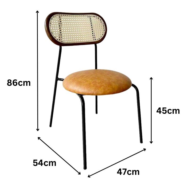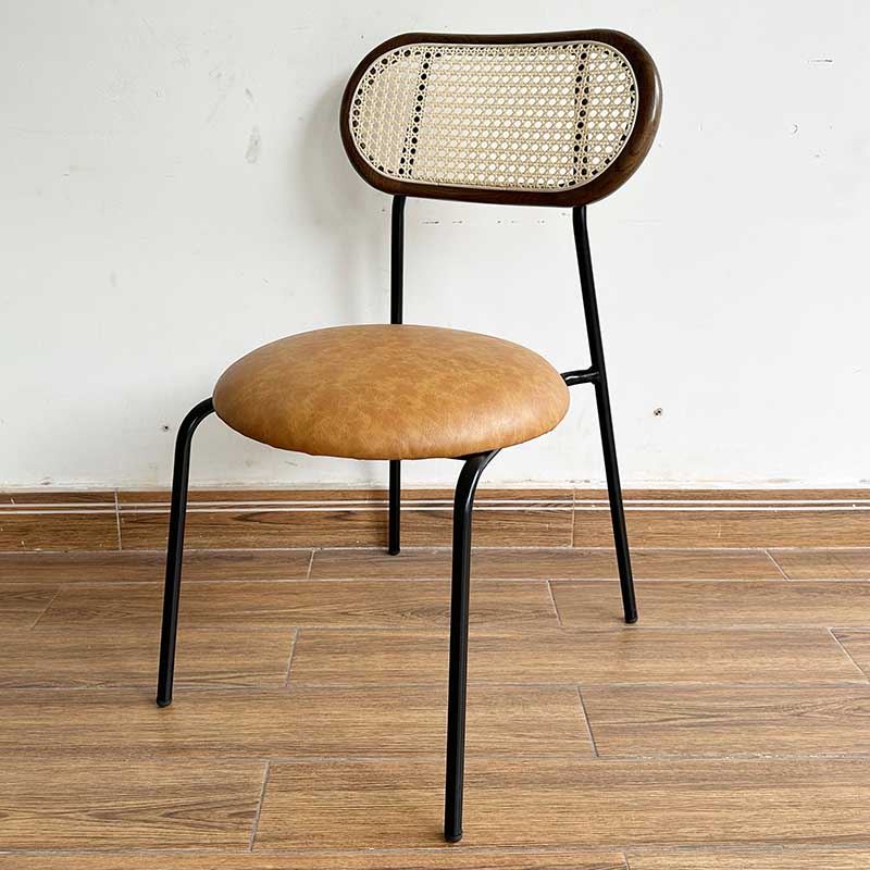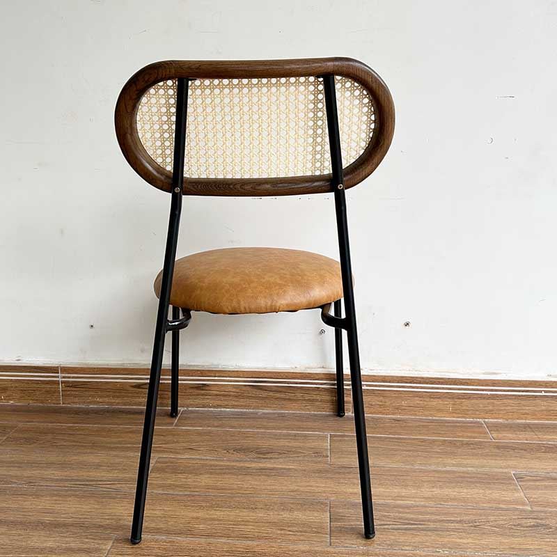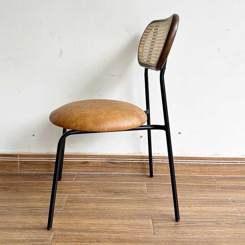 Ghế Cafe, Ghế Ăn chân sắt Rattan - GCF135 thiết kế đơn giản nhưng kết hợp nhiều vật liệu tạo nên sự sang trọng, khung chân sắt sơn tĩnh điện chắc chắn, nệm ngồi nệm mút bọc Simili mềm cao cấp rất êm ái ( Có thể thay đổi màu Si). Cùng với đó là khung lưng ghế gỗ Ash kết hợp với lưới nhựa giả mây màu trắng cực đẹp mắt. Thiết kế kích thước tiêu chuẩn ngồi rất thoải mái và êm ái, mẫu ghế phù hợp với các mẫu bàn ăn, bàn cafe.