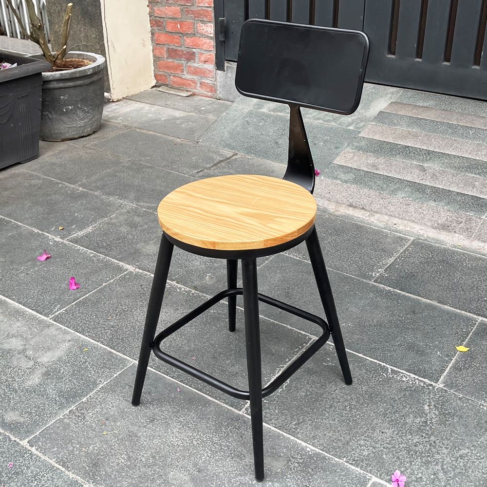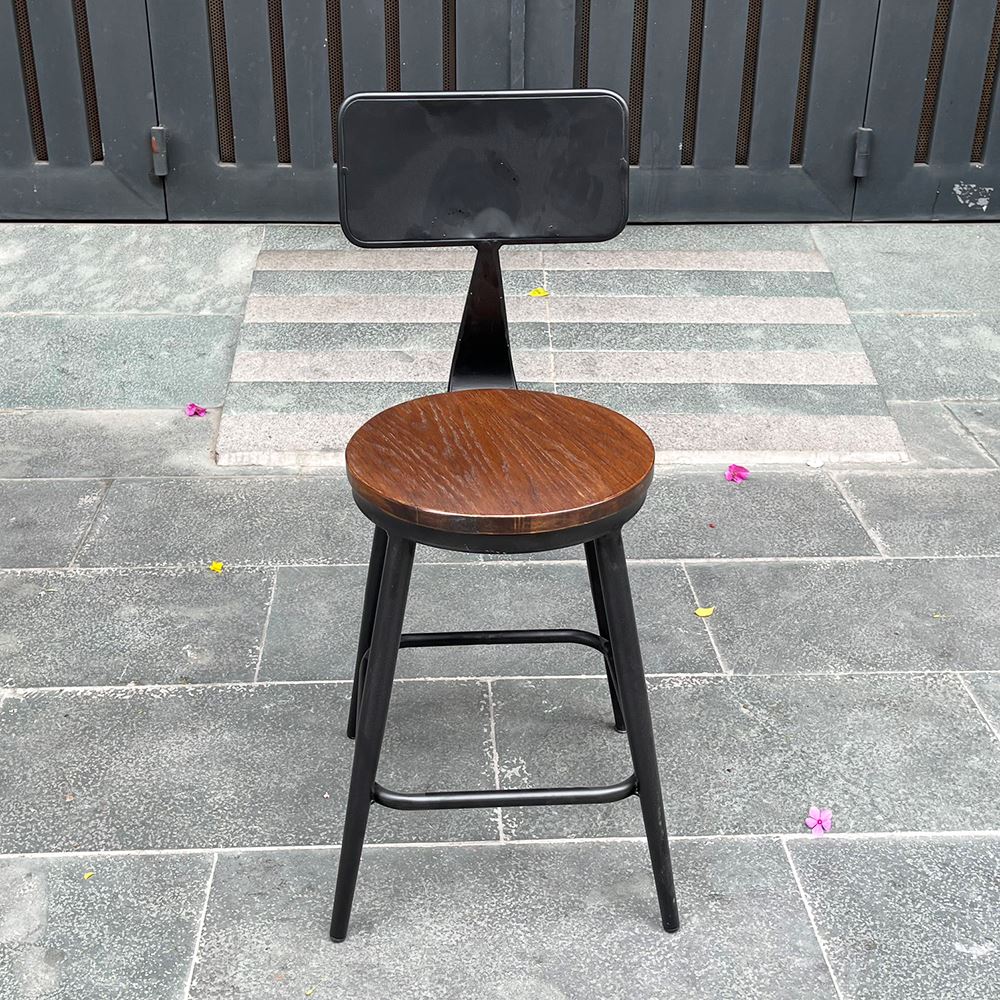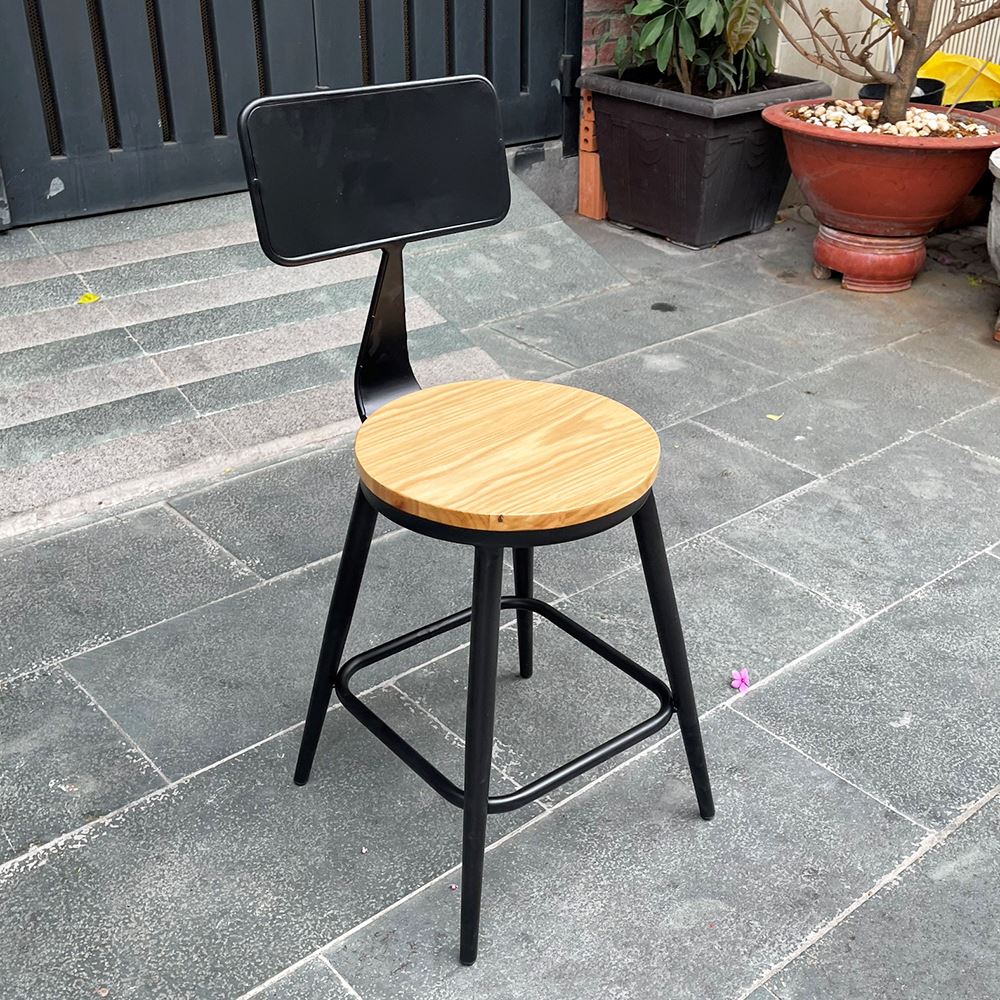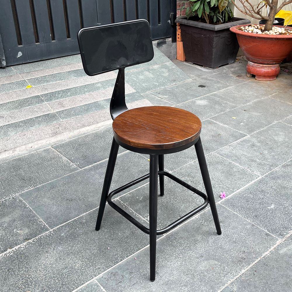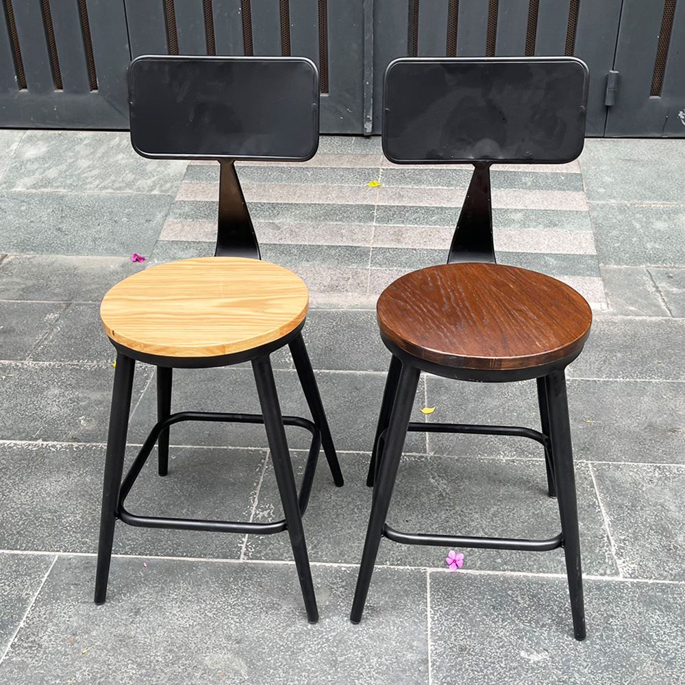 Ghế cafe, ghế ăn có lưng tựa mặt gỗ màu nâu mang phong cách retro, cổ điển