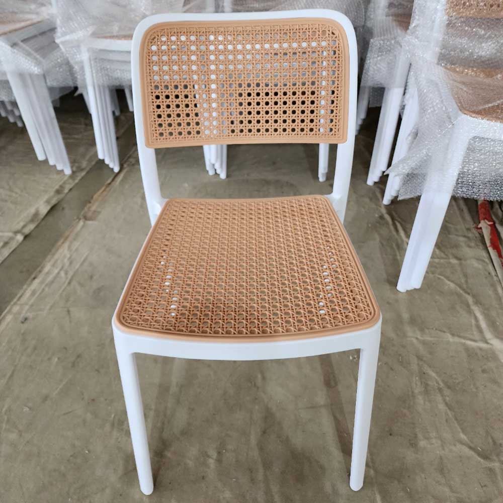 Phần lưới giả mây mắt cáo được đan xen kẽ nhau tạo nên những ô vuông nhỏ, giúp tạo sự thông thoáng cho ghế và tăng khả năng thoát nhiệt. Nhờ vậy, người dùng sẽ cảm thấy thoải mái khi sử dụng ghế trong thời gian dài, đặc biệt là vào những ngày nóng bức. Ghế ST3045 có thể xếp chồng gọn gàng khi không sử dụng, giúp tiết kiệm diện tích và dễ dàng di chuyển. Đây là ưu điểm vượt trội giúp sản phẩm trở thành lựa chọn lý tưởng cho các quán cafe, nhà hàng hay những không gian có diện tích hạn chế.