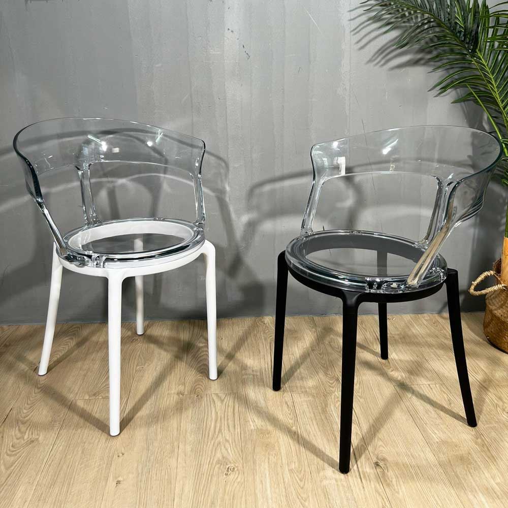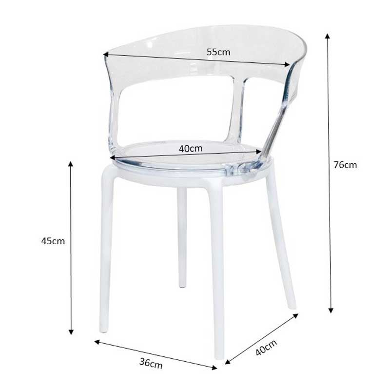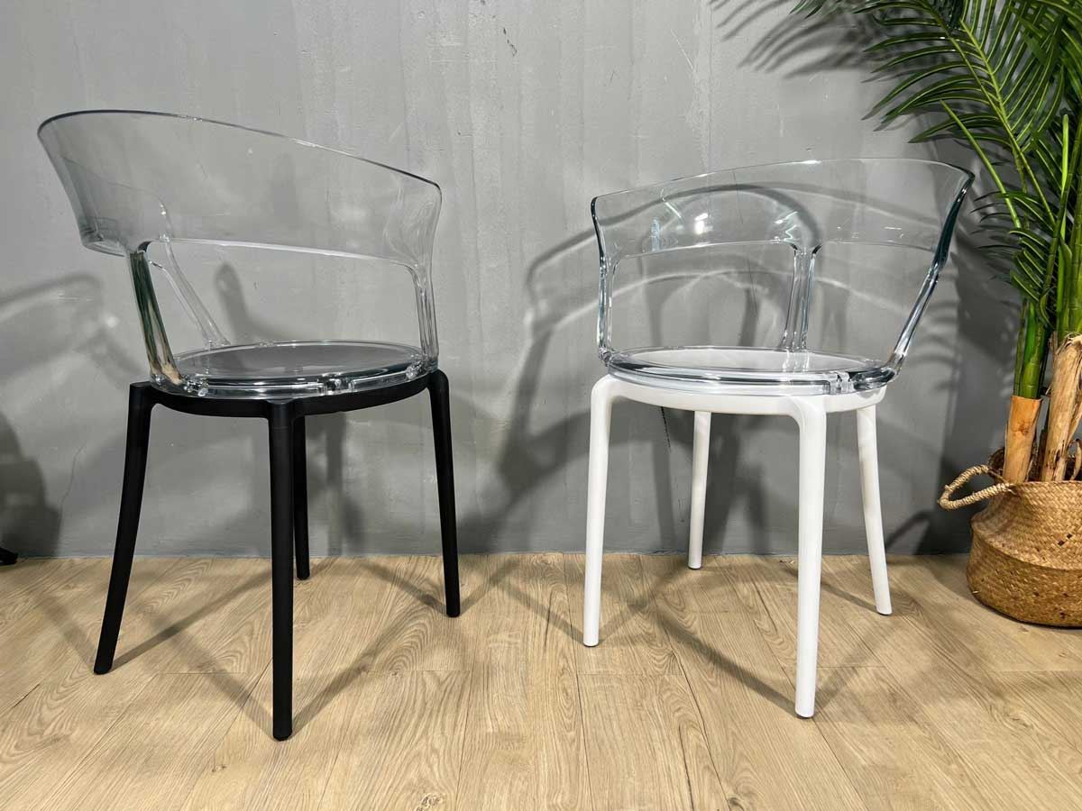 • Màu sắc: Lưng ghế trong suốt - Chân ghế màu trắng hoặc đen