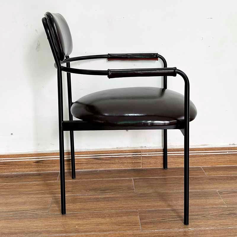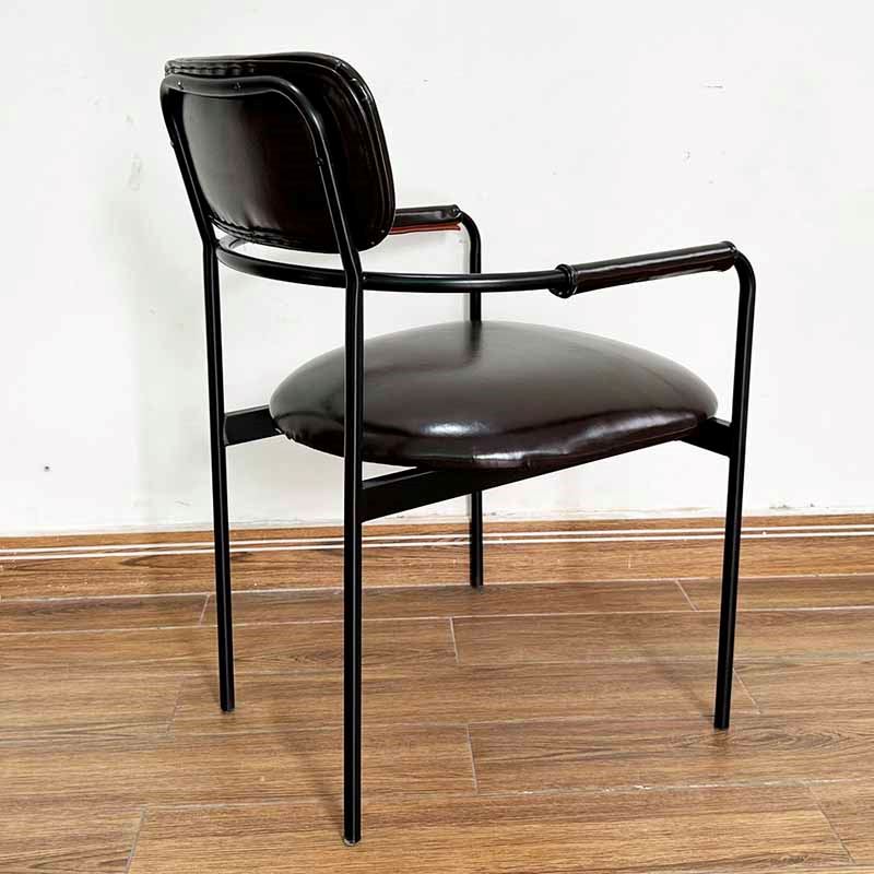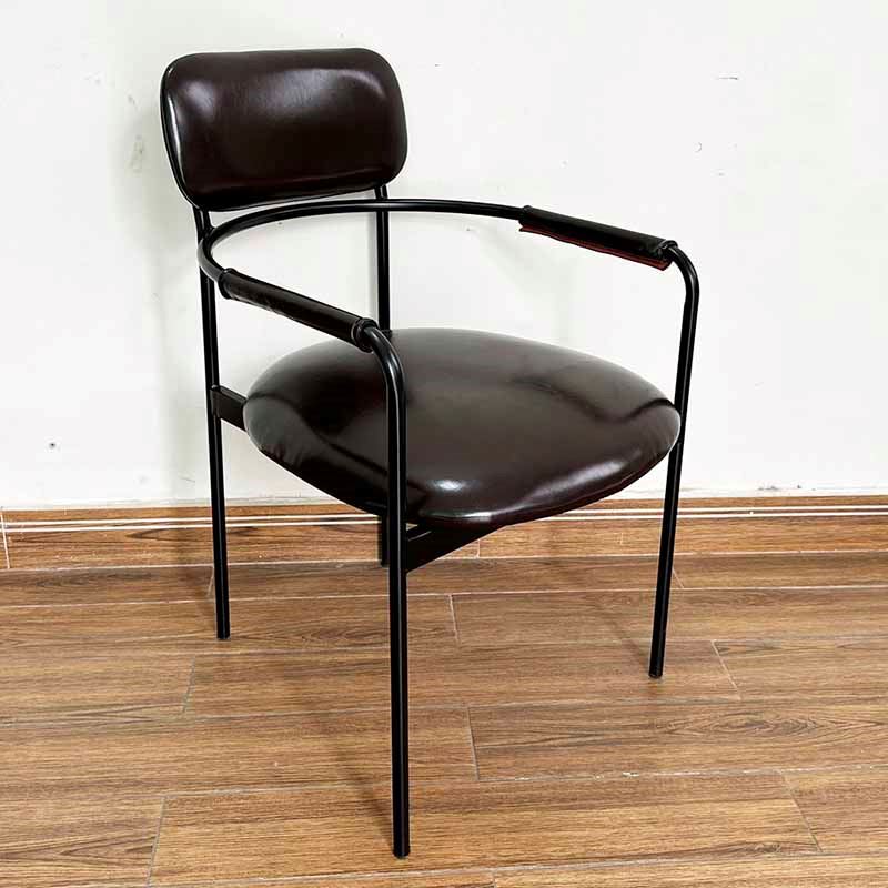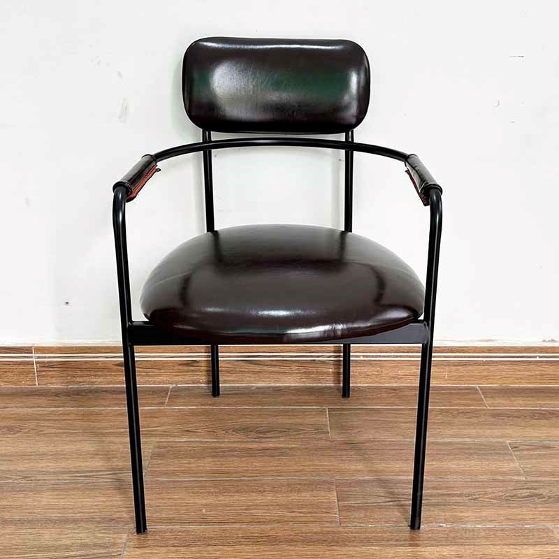Ghế cafe, ghế ăn nệm simili khung sắt TTG012 toát lên vẻ đẹp thanh lịch, tinh tế với những đường uốn cong mềm mại được gia công tỉ mỉ phù hợp với nhiều không gian như quán cafe hay gia đình đều được. Phần lưng tựa và mặt ghế được làm từ nệm mút dày, êm ái bọc simili tạo nên sự thoải mái khi sử dụng kết hợp với đó là khung chân sắt sơn tĩnh điện đem lại kết cấu chắc chắn, an toàn khi sử dụng.