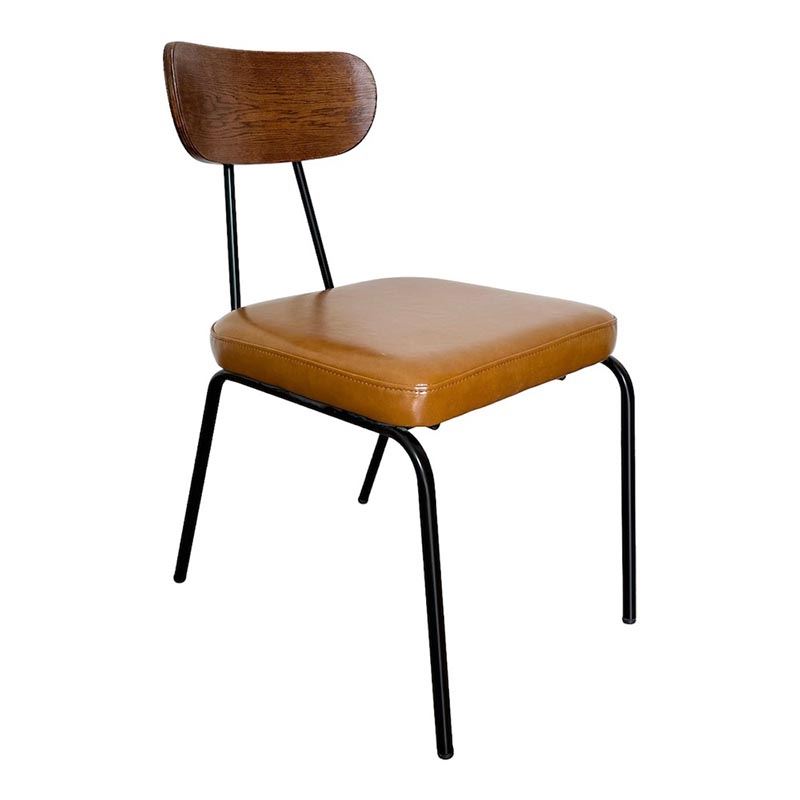 Ghế cafe nệm simili tựa lưng gỗ GCF130 sở hữu kiểu dáng cổ điển nhưng không kém phần tinh tế phù hợp với không gian nội thất theo concept retro. Tựa lưng gỗ uốn cong thoải mái khi tựa lưng và nệm ghế bọc nệm da PU mang đến sự sang trọng cũng như dễ dàng vệ sinh. Kết hợp với đó là chân sắt tròn sơn tĩnh điện màu đen đảm bảo độ bền và vững chãi nhưng không mất đi sự tinh tế của sản phẩm.