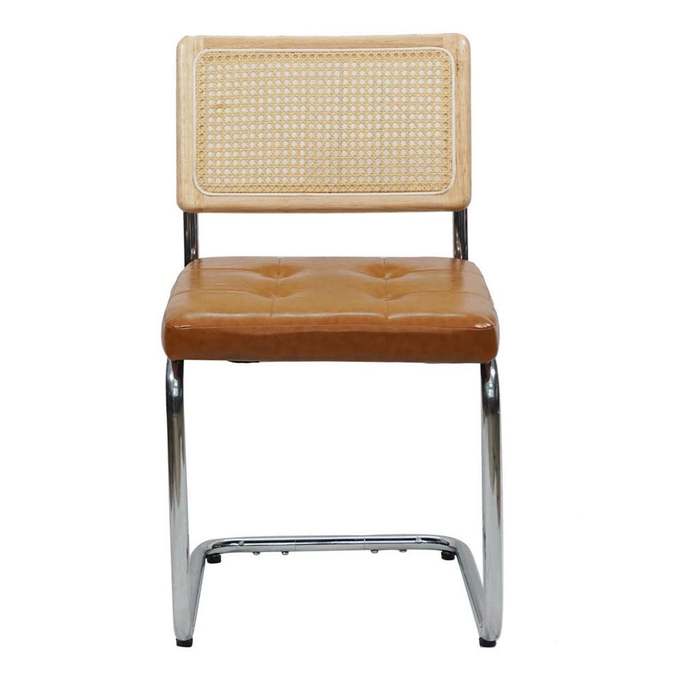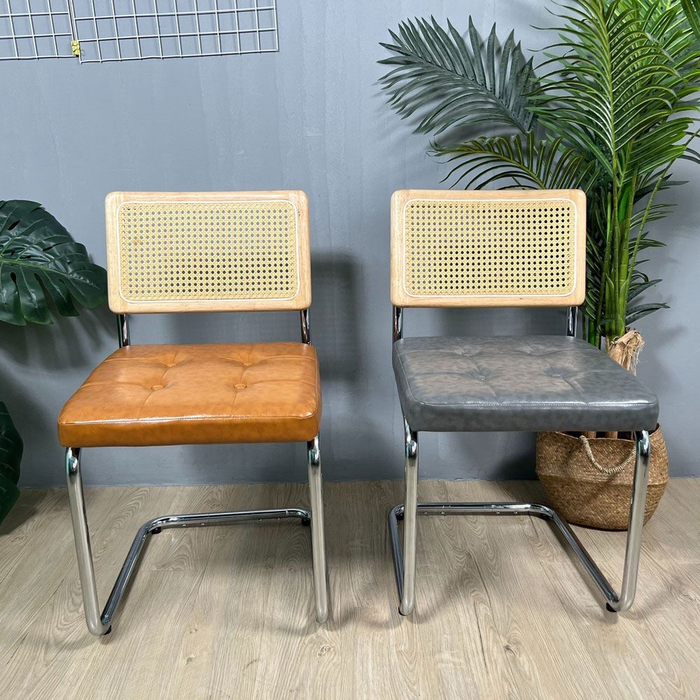 • Chất liệu: Khung chân inox - Lưng đan mây mắt cao - Khung gỗ cao su - Nệm ngồi bọc da PU