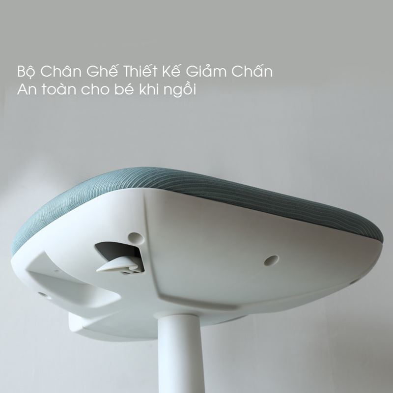 3. Chân ghế : Chân ghế bằng nhựa màu trắng có thiết kế giảm chấn an toàn khi ngồi