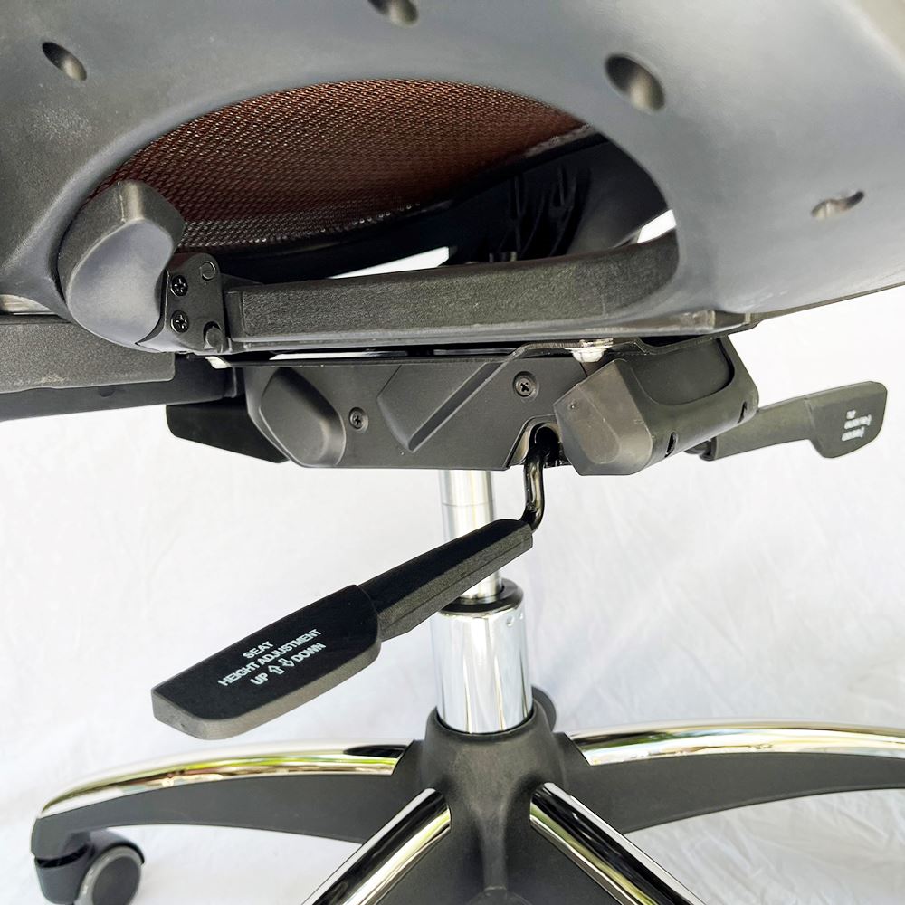 Bộ cần điều chỉnh 3 chức năng : đệm ngồi trượt ra vào, nâng hạ chiều cao và ngả lưng