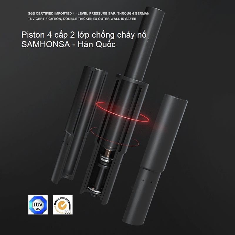 - Trụ nâng hạ chiều cao : Piston 4 cấp 2 lớp chống cháy nổ SAMHONSA - Hàn Quốc