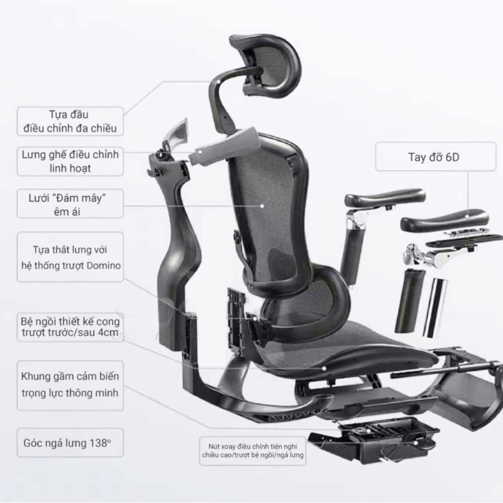 • Cơ cấu điều khiển dây da đa chức năng, với khả năng nghiêng, đệm trượt, điều chỉnh độ cao và độ chặt, điều chỉnh lên xuống phù hợp