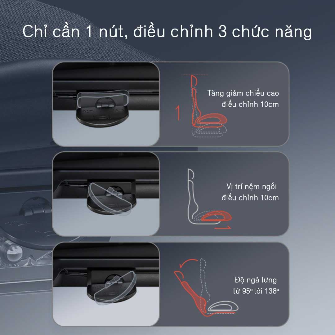 • Lưng ghế phía dưới có 4 vị trí điều chỉnh góc, hỗ trợ đa dạng góc nghiêng