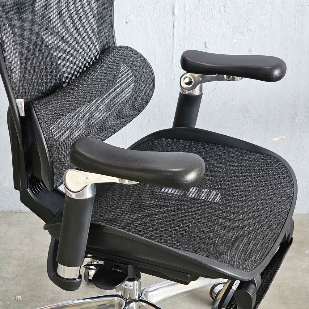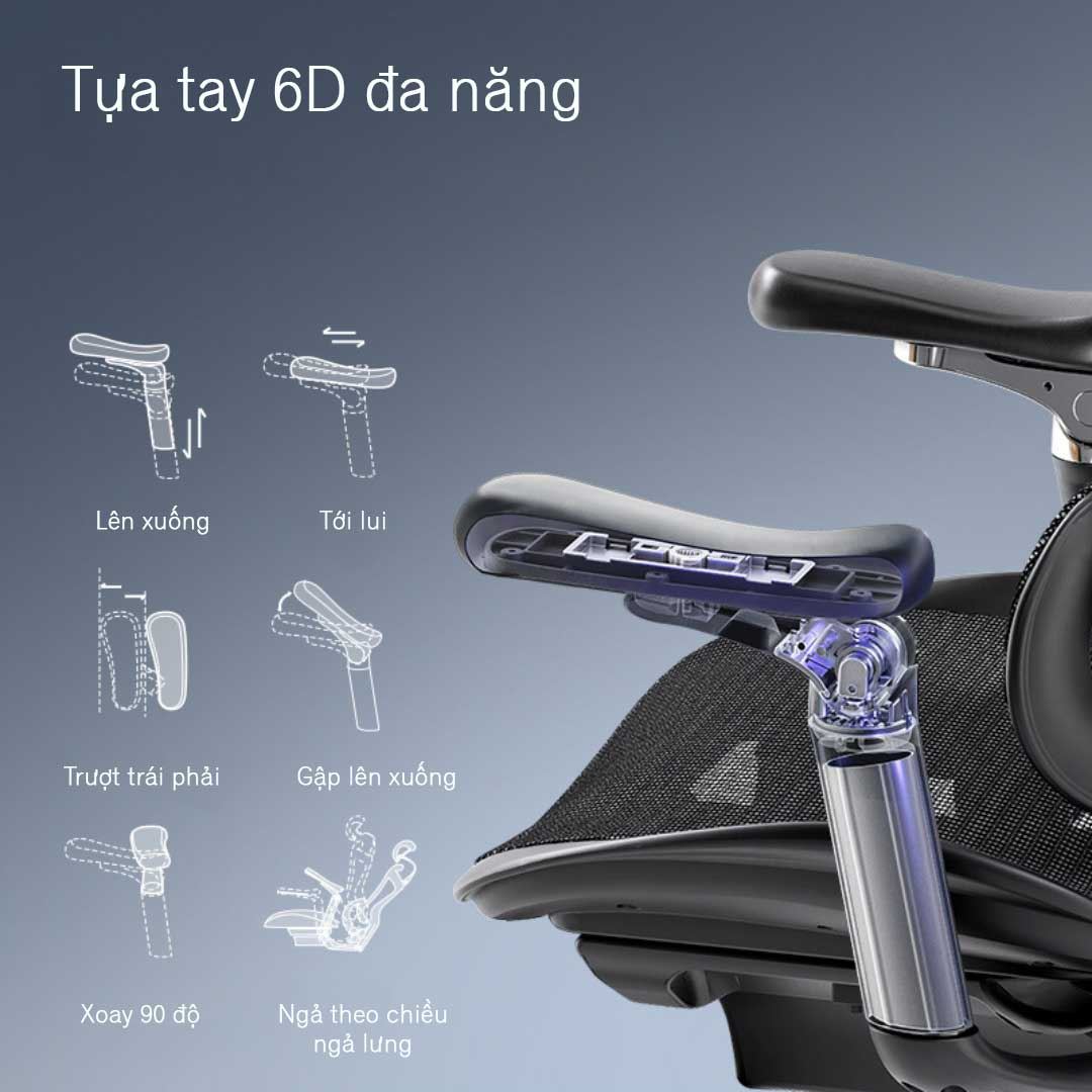 • Tay ghế nhôm và bọc PU mềm 6D, có thể điều chỉnh độ cao, góc nghiêng, điều chỉnh lùi và tiến đồng thời song song