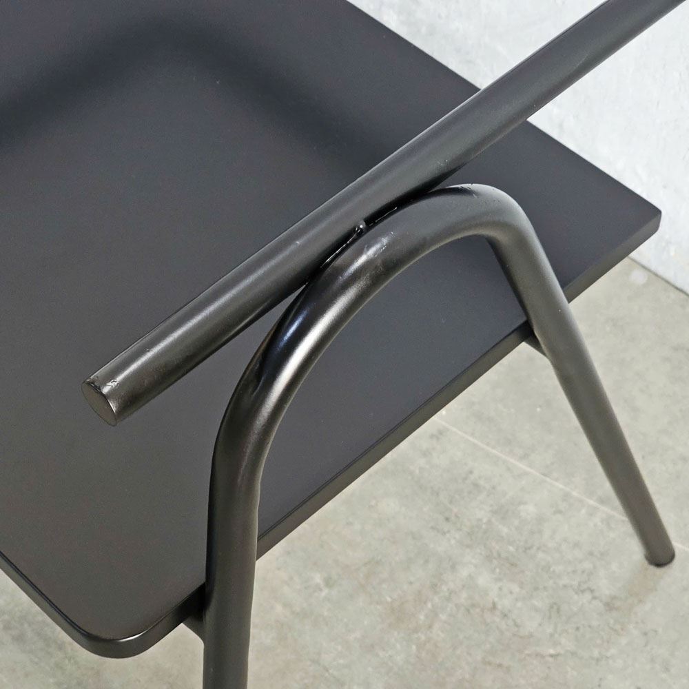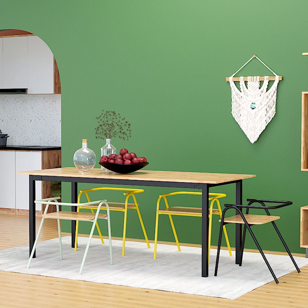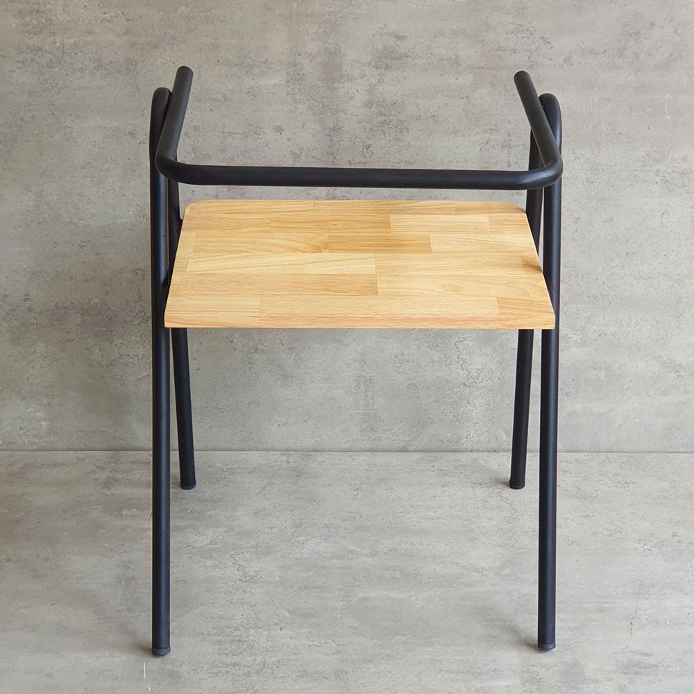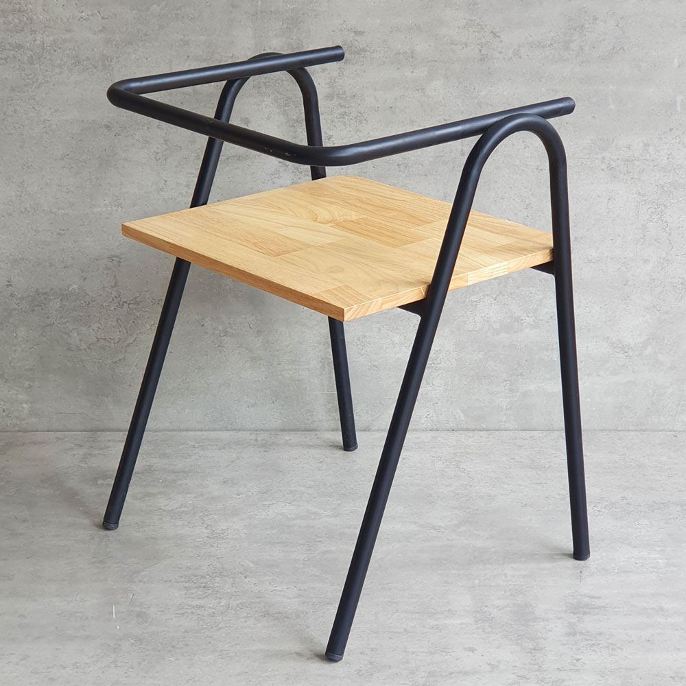 Khung ghế được làm từ sắt tròn phi 22 dày 1.2mm sơn tĩnh điện, đảm bảo độ bền bỉ và chắc chắn theo thời gian. Mặt ngồi và tựa lưng được làm từ gỗ cao su AA, một loại gỗ tự nhiên có độ bền cao, vân gỗ đẹp và màu sắc ấm áp. Gỗ cao su AA được xử lý PU chống thấm và chà nhám kỹ lưỡng, không chỉ mang lại vẻ đẹp sang trọng, mà còn tạo cảm giác thoải mái khi chạm vào.