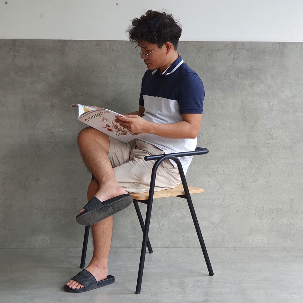 Ghế COZY có thiết kế không cầu kỳ, hoa mỹ, mà tập trung vào sự đơn giản, tinh tế. Khung sắt tròn được uốn cong mềm mại, tạo nên những đường nét uyển chuyển, vừa mang lại sự chắc chắn, vừa tạo cảm giác nhẹ nhàng, thoáng đãng. Mặt ngồi và tựa lưng bằng gỗ tự nhiên được xử lý tinh tế, không chỉ mang lại cảm giác thoải mái khi ngồi, mà còn tôn lên vẻ đẹp tự nhiên, ấm áp của gỗ.