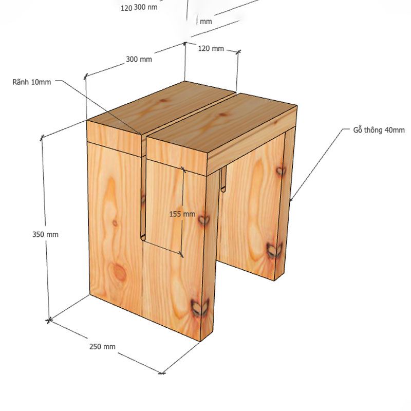 • Chất liệu: Gỗ thông dày 40mm đã qua xử lý, hoàn thiện PU chống thấm