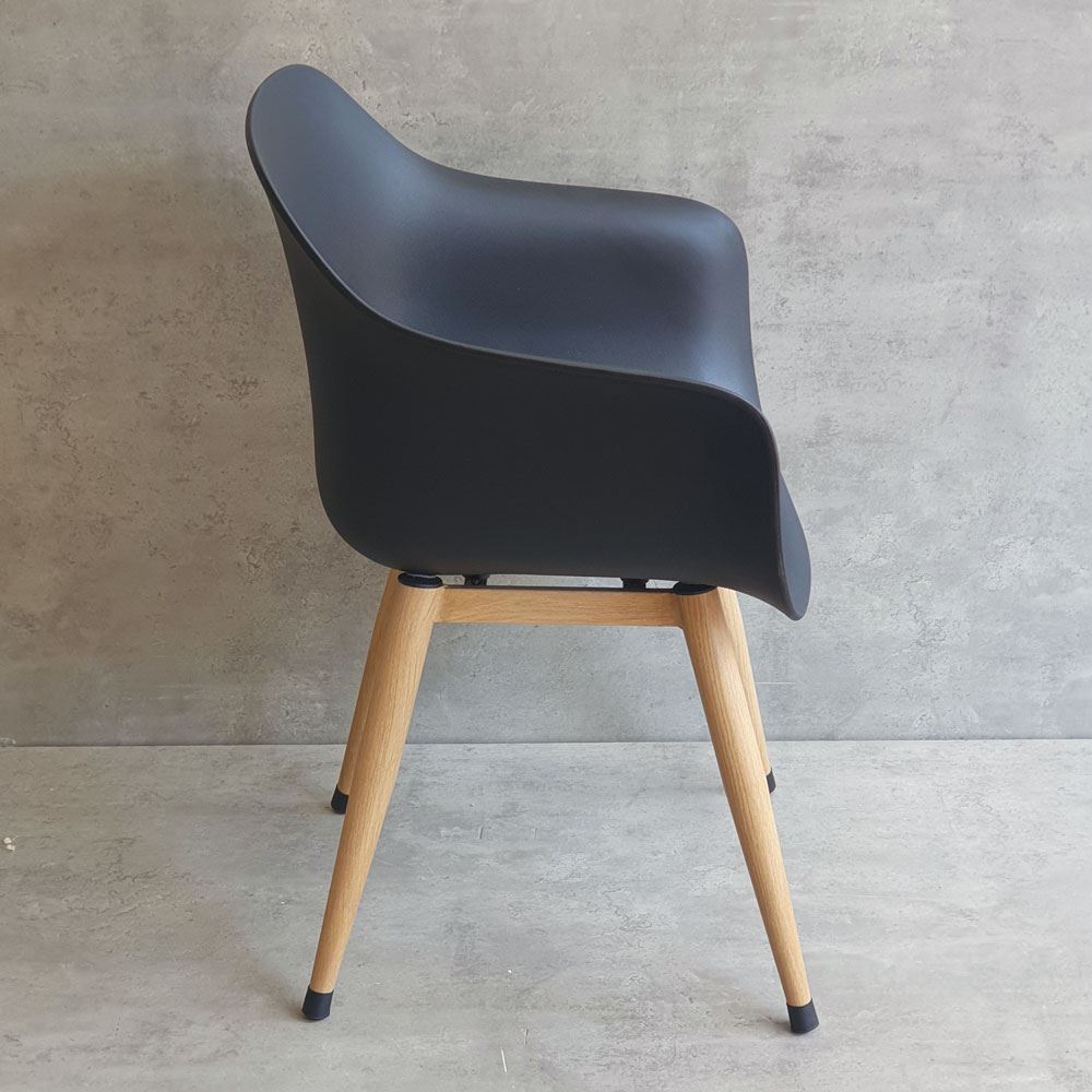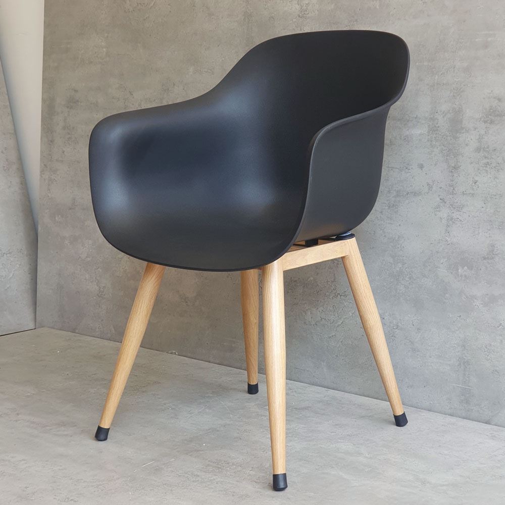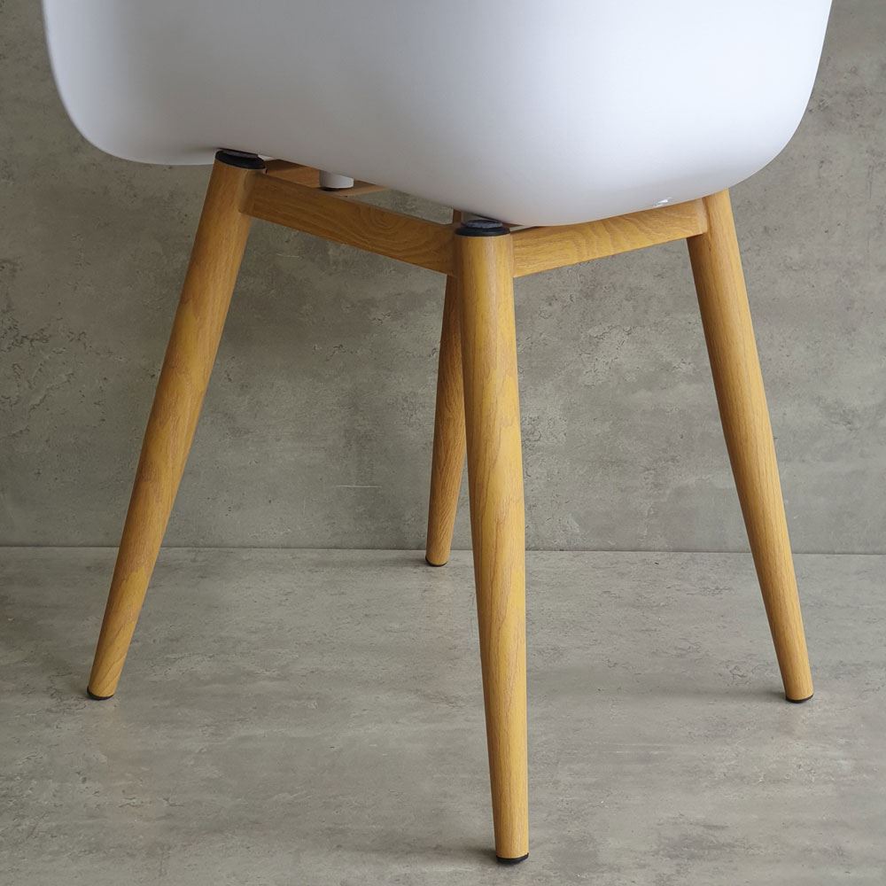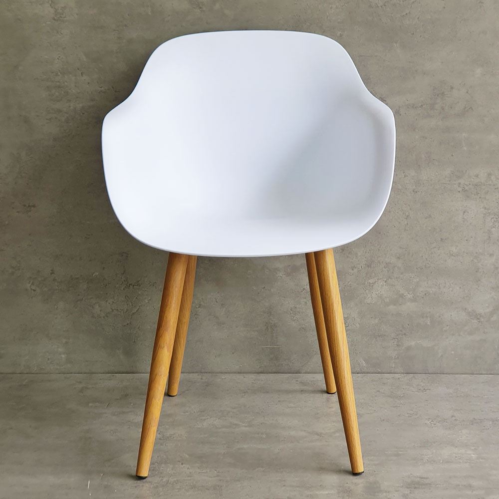 Chất liệu lưng ghế là loại nhựa PC cao cấp, đảm bảo độ cứng cáp và bền bỉ trong quá trình sử dụng. Chân ghế được làm bằng sắc cực kỳ vững chắc, với khả năng chịu lực tốt. Bề mặt chân sắt được phủ lớp sơn giả gỗ giúp mang lại tính thẩm mỹ cao, đồng thời giúp bảo vệ chất sắt không bị gỉ sét bởi tác động từ môi trường.