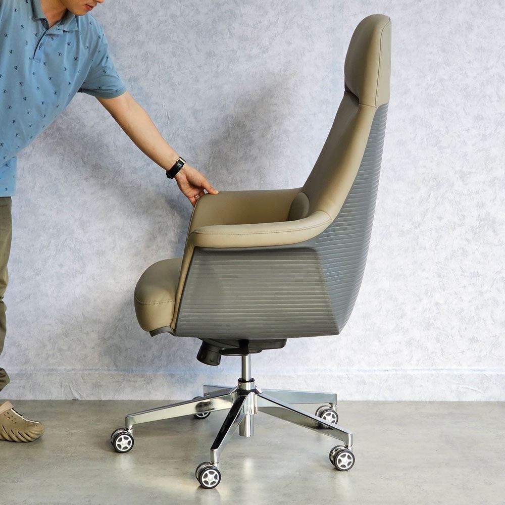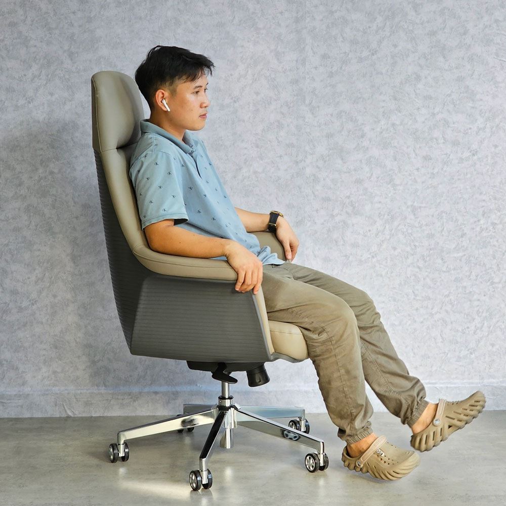 Lưng ghế được thiết kế cao giúp người ngồi có thể tựa đầu nghỉ ngơi, đồng thời tựa lưng cũng được làm uốn cong để giúp nâng đỡ toàn bộ cột sống khi tựa vao. Điều này giúp cho phần lưng người ngồi giảm bớt áp lực dồn lên phần thắt lưng, tránh bị tình trạng đau lưng khi ngồi qua lâu. Đệm ngồi được làm dày dặn và rộng rãi, phù hợp với mọi khung xương chậu. Đặc biệt, mép ghế còn có độ vát cong nhẹ, làm giảm áp lực dồn lên đùi, tránh tê nhức chân.