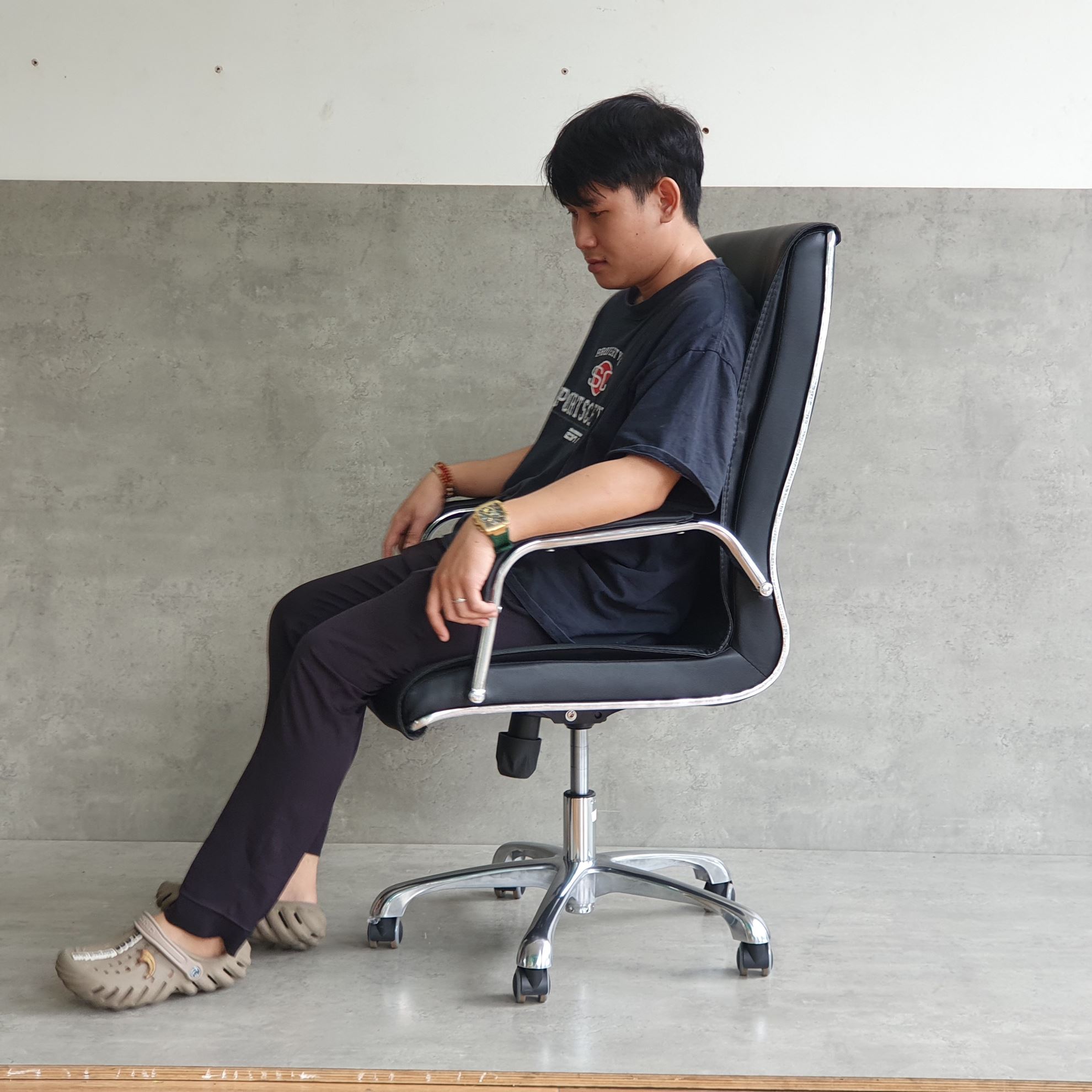 Ghế giám đốc chân xoay MF873 có kết cấu phần khung lưng ghế bọc simili toàn bộ, đem đến góc nhìn hiện đại và sang trọng. Khung lưng thế được thiết kế để ôm theo phần đường cong của cột sống giúp bạn tránh những cơn đau do ngồi nhiều. Tiếp đến là vẻ bóng loáng của chân ghế được làm từ sắt chất liệu cao cấp đảm bảo khả năng chịu lực và độ bền cao.
