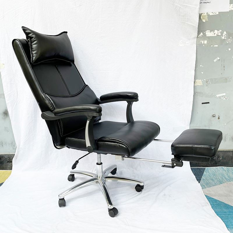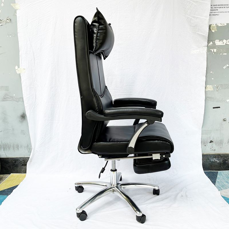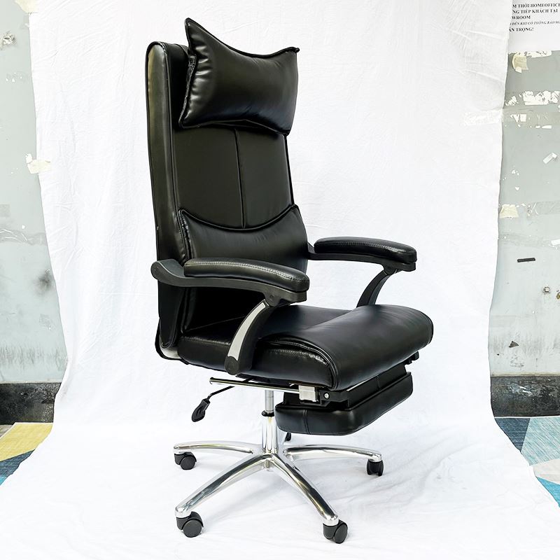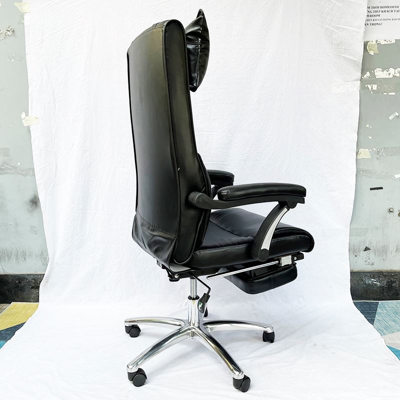 HOM1058-01 - Ghế Giám Đốc có thiết kế oai vệ thích hợp với những vị trí cao như giám đốc, trưởng phòng. Là chiếc ghế xoay có thiết kế cao cấp, thông minh, tạo cảm giác thoải mái tối đa. Có thể điều chỉnh được cao và độ ngã lưng bằng 2 cần điều khiển, lưng ghế rộng rãi thoải mái. Màu đen thể hiện sự sang trọng,uy nghiêm của người ngồi.