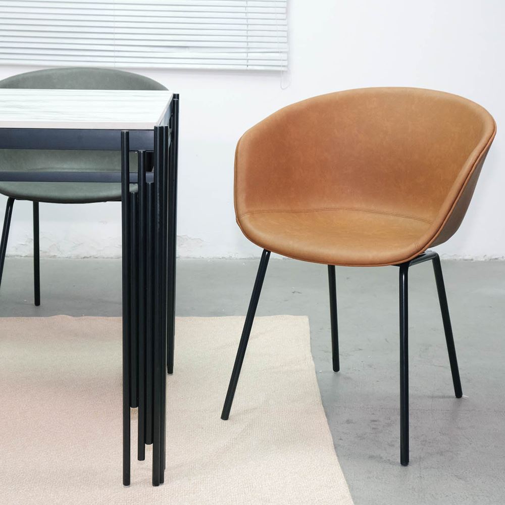 Ghế HAY nệm da chân sắt sơn tĩnh điện GAK26-PU với phần lưng và nệm bọc da cương ngựa hạn chế trầy xước, chống thấm nước dễ dàng vệ sinh. Kết hợp với phần nệm ngồi da là chân sắt tròn đảm bảo độ bền và vững chãi nhưng không mất đi sự tinh tế của sản phẩm, bề mặt sắt phủ lớp sơn tĩnh chất lượng cao bền bỉ theo thời gian.