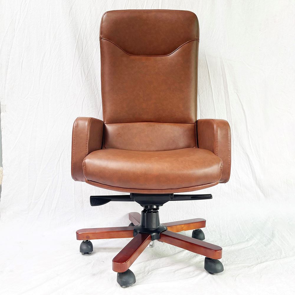 Ghế lãnh đạo nệm da cao cấp chân xoay bằng gỗ