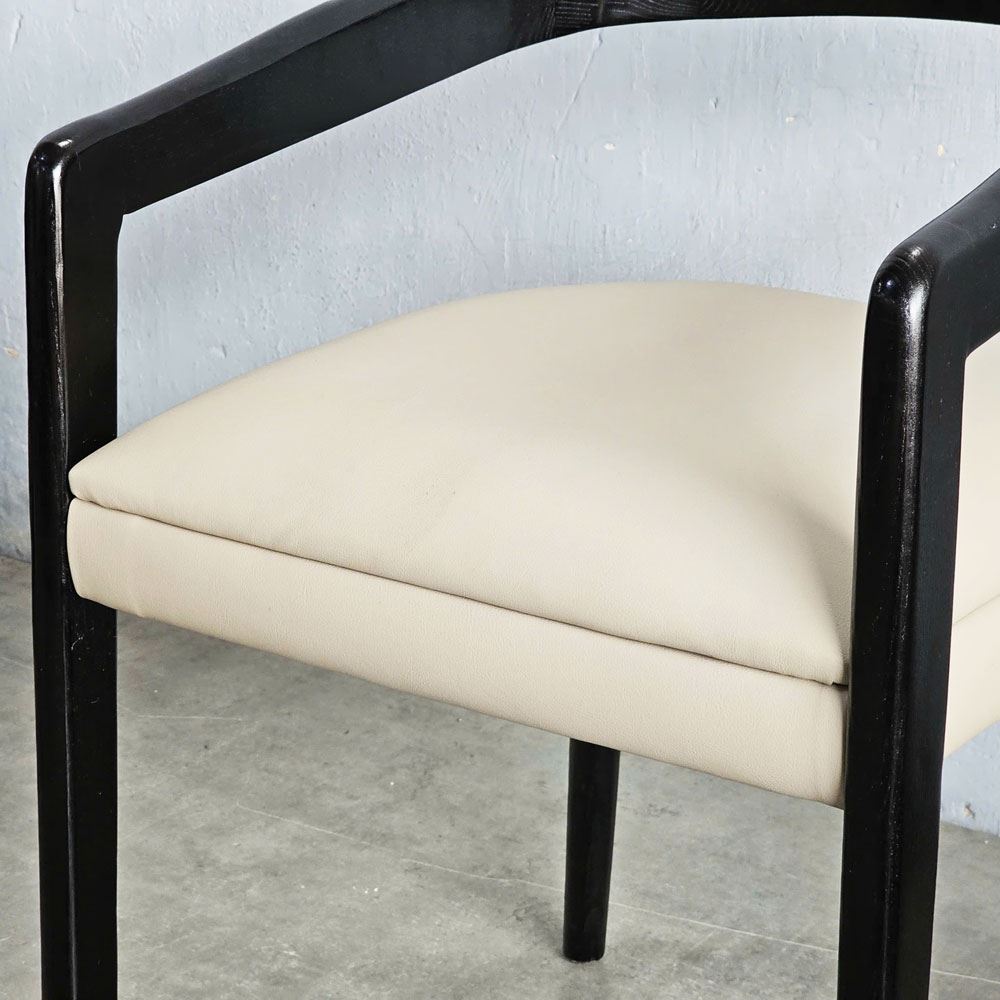 Khung ghế được làm bằng chất liệu gỗ tần bì (gỗ Ash) nổi tiếng với độ bền cao, khả năng chịu lực tốt và vân gỗ đẹp mắt. Chất liệu này không chỉ mang đến sự chắc chắn cho sản phẩm mà còn tạo điểm nhấn thẩm mỹ với những đường vân gỗ tự nhiên, tinh tế. Phần đệm ngồi được làm từ mút xốp dày dặn, có độ đàn hồi cao mang đến cảm giác êm ái, thoải mái và giúp giảm áp lực lên cơ thể khi ngồi trong thời gian dài.