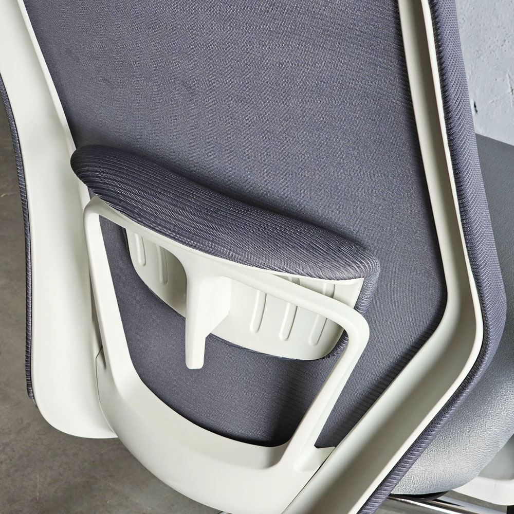 2. Tựa lưng ghế: Tựa lưng ghế khung bằng nhựa trắng, bọc vải/lưới