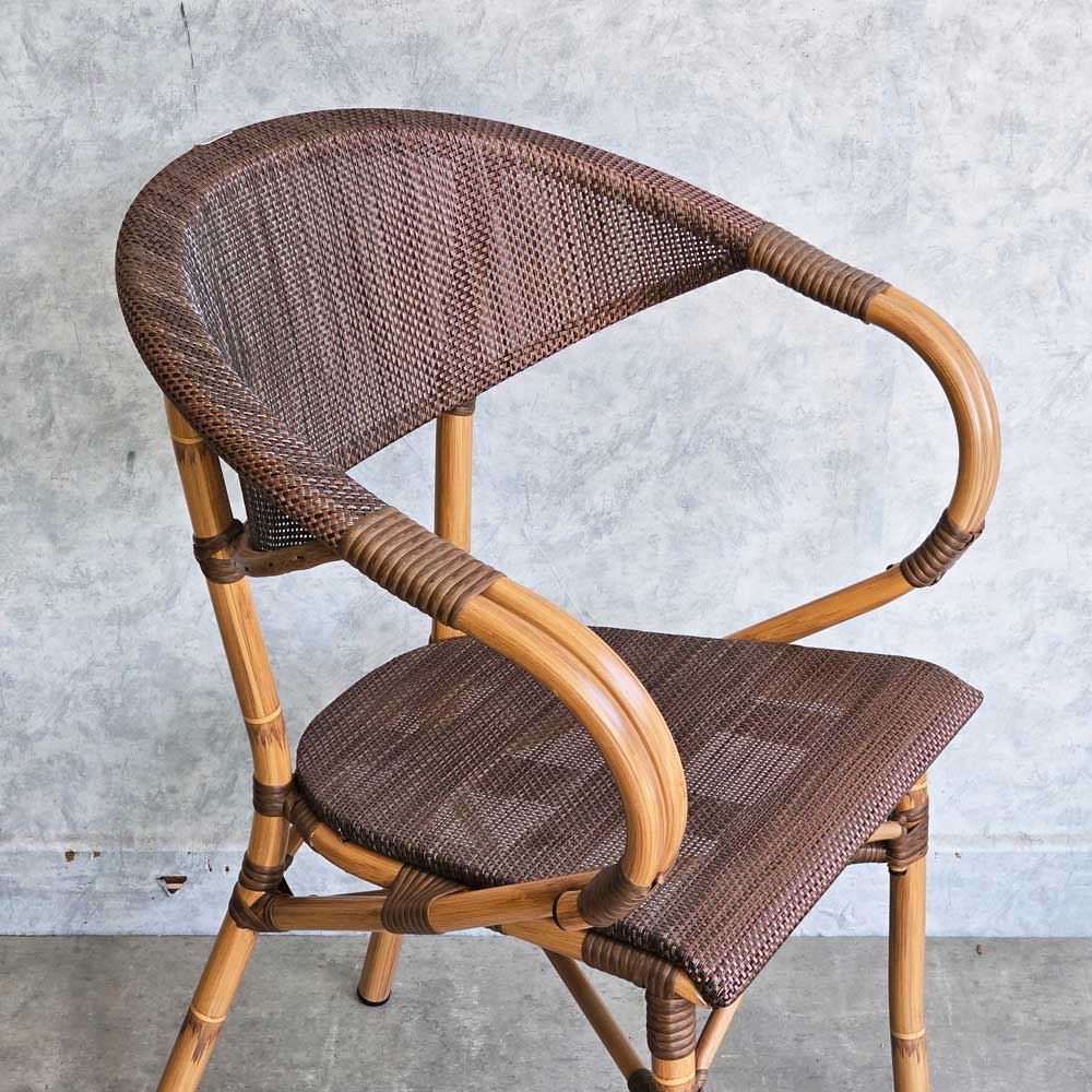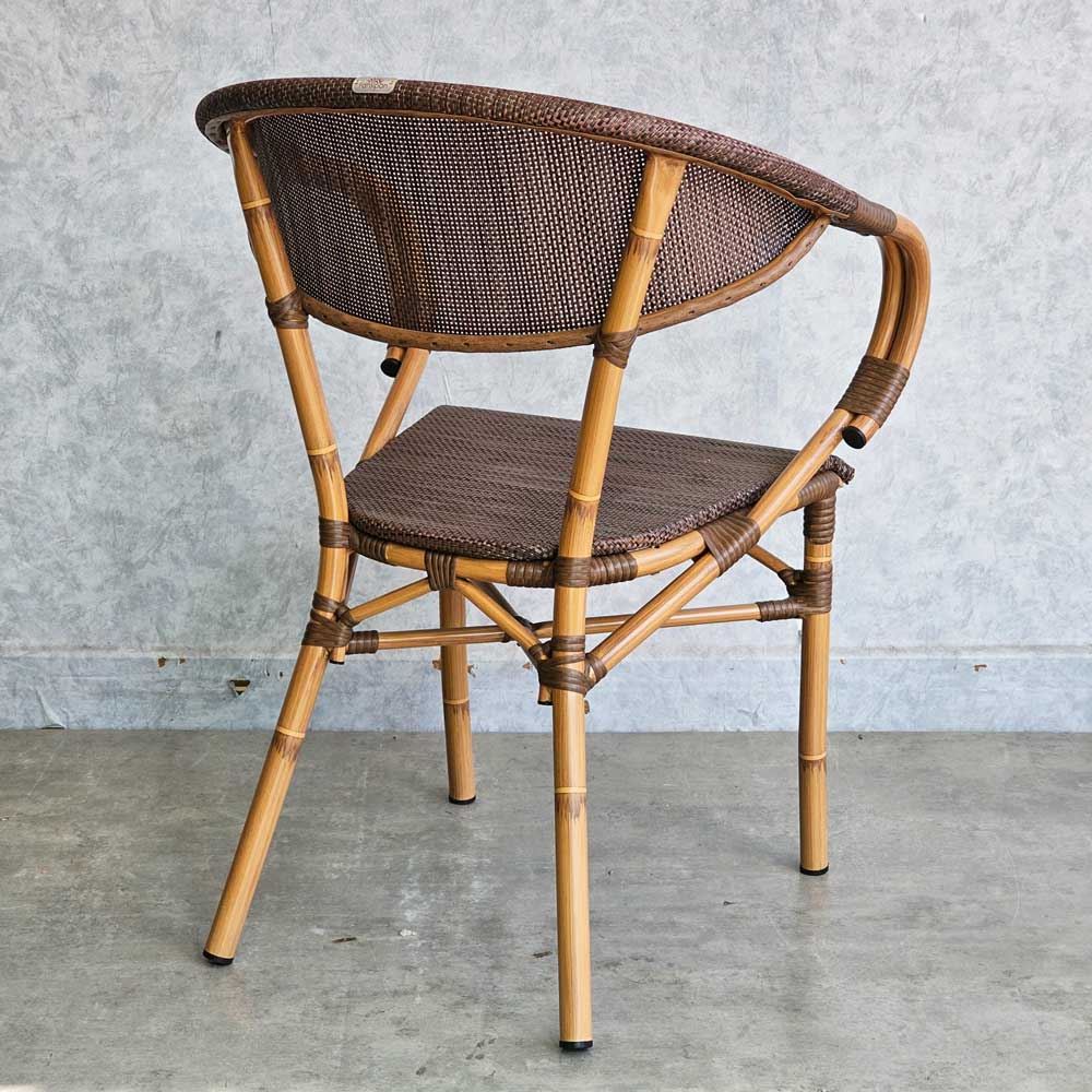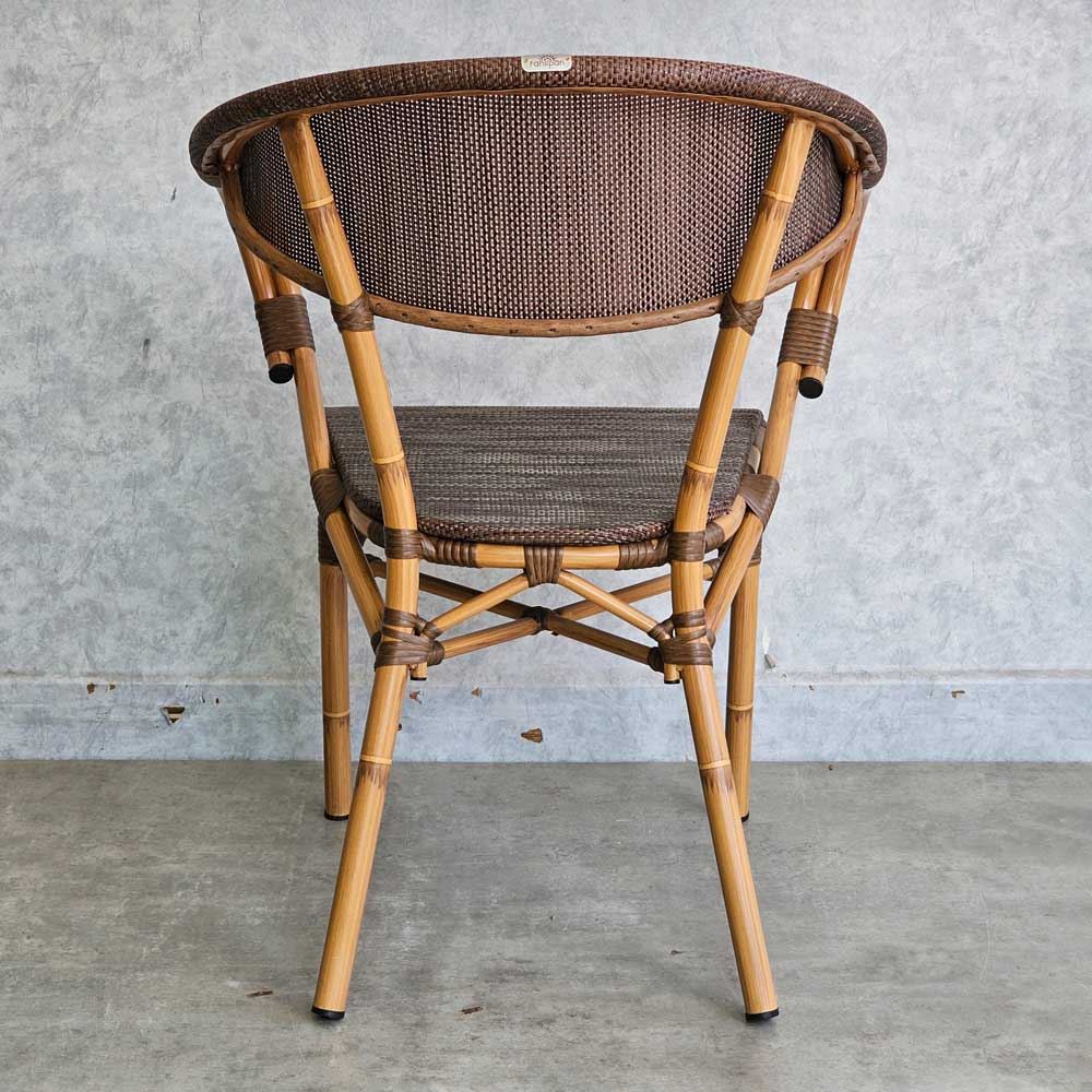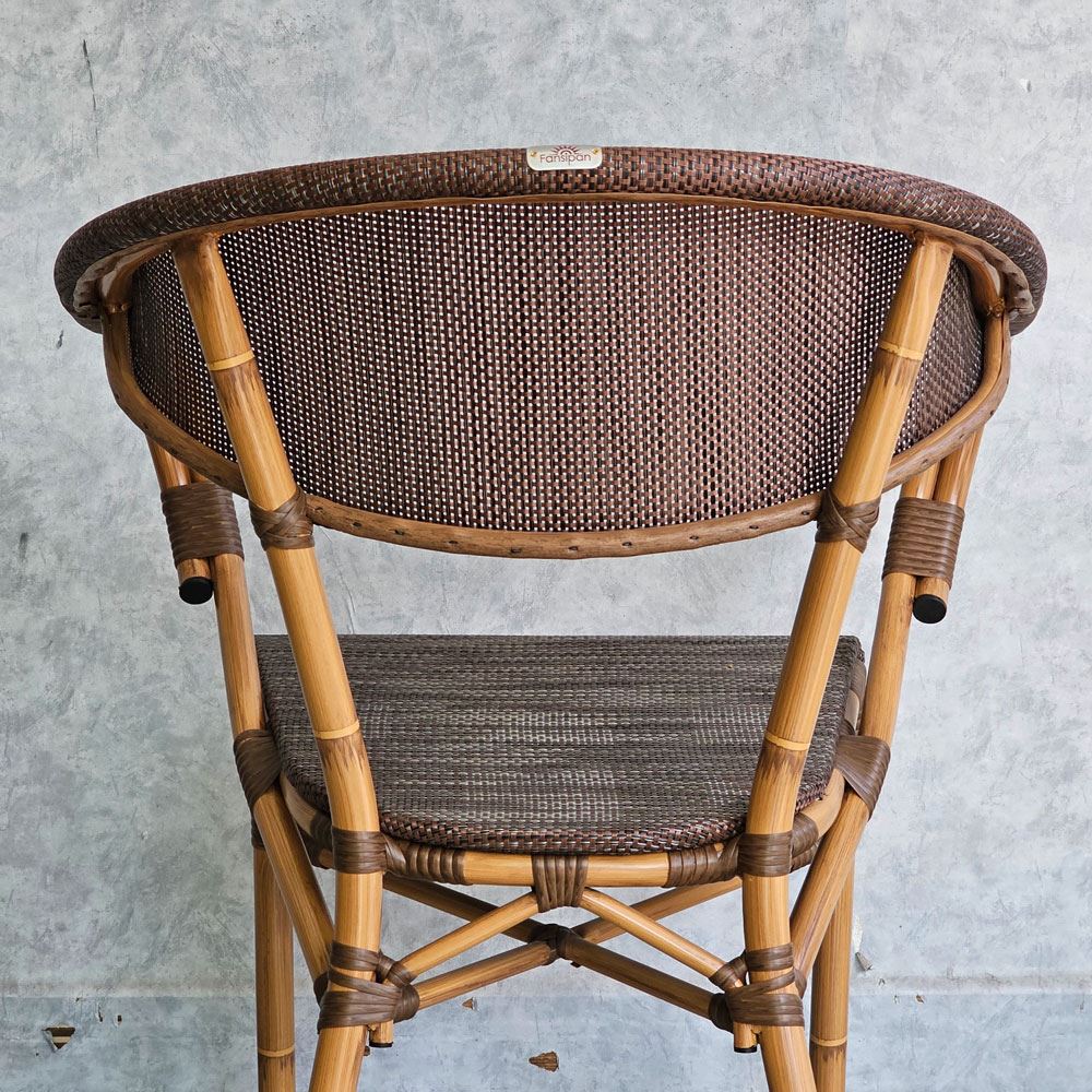 Ghế ngoài trời có thiết kế tối giản với phần lưng ghế bo cong nối dài đến mặt ngồi, mang lại sự thanh lịch và hiện đại cho không gian. Các chi tiết đan dây tinh tế tạo điểm nhấn ấn tượng, góp phần tô điểm thêm cho khu vườn nhà bạn.