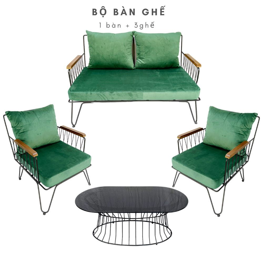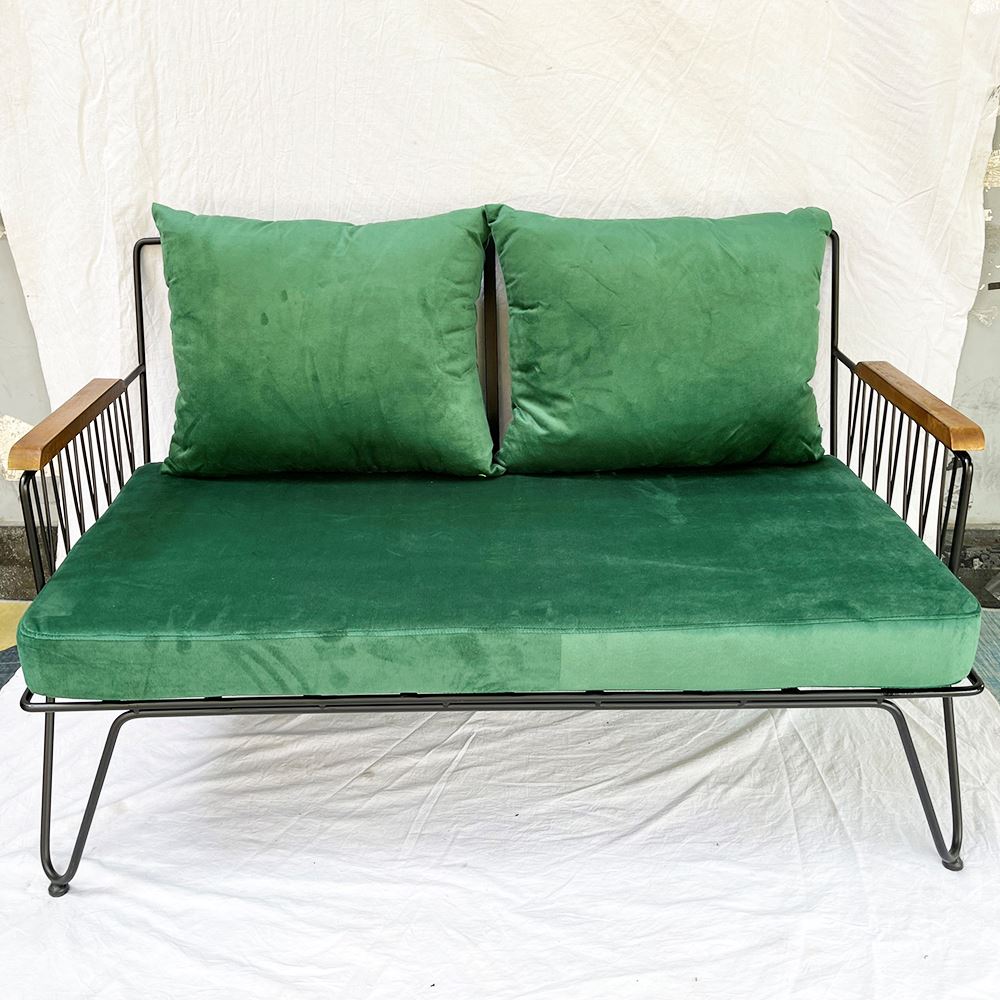 Ghế sofa băng 2 chỗ ngồi nệm xanh khung sắt