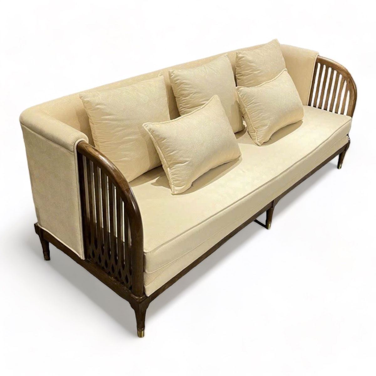 Ghế sofa băng SFB68075 được thiết kế theo phong cách Inchochine gợi ta đến những ký ức xa xưa, hoài cổ mang tính nghệ thuật cao. Với phần khung ghế được làm từ gỗ tần bì màu nâu trầm hoặc đen với điểm nhấn tay gỗ uốn cong mềm mại, bọc vải hoạ tiết tinh tế làm toát lên sự sang trọng cho sản phẩm.