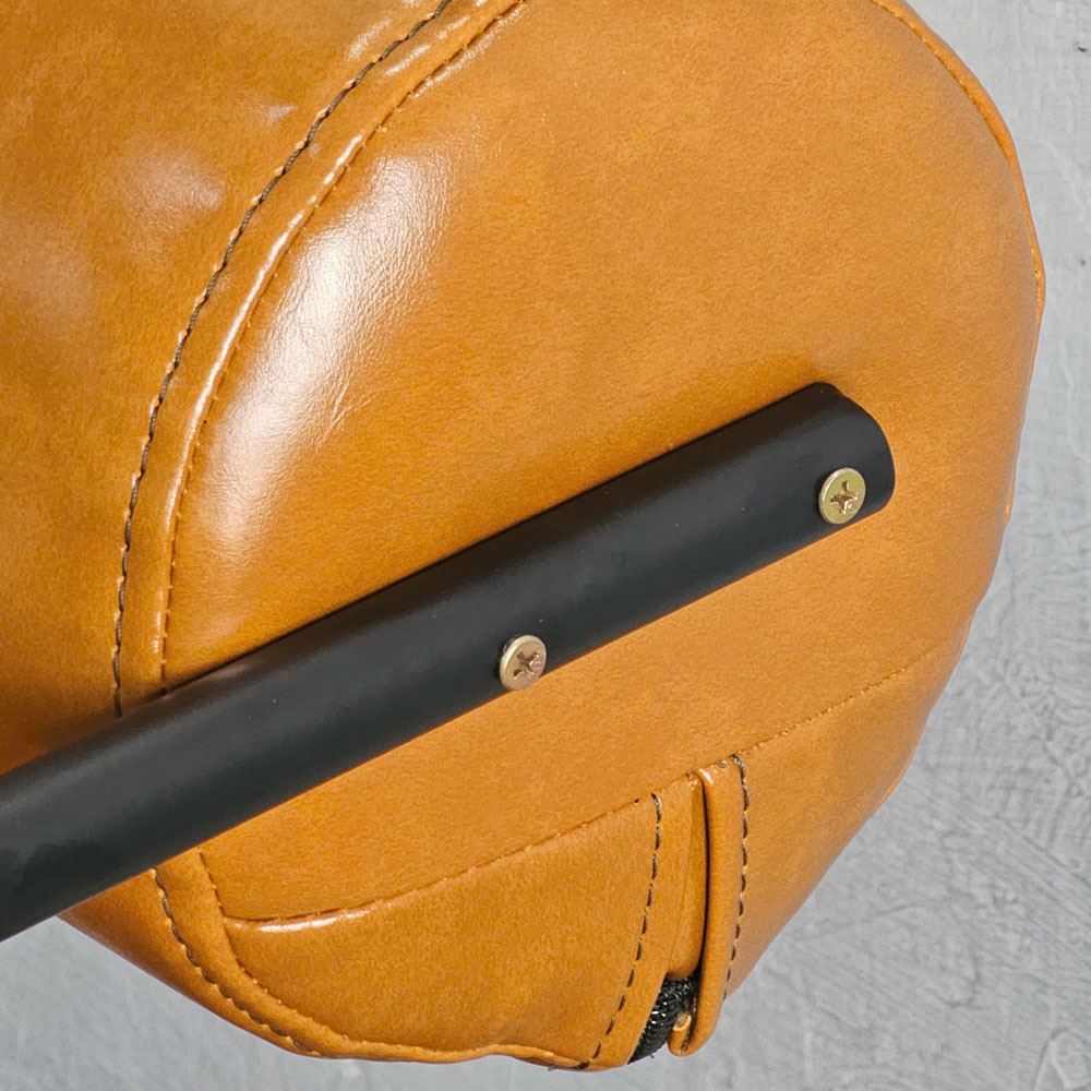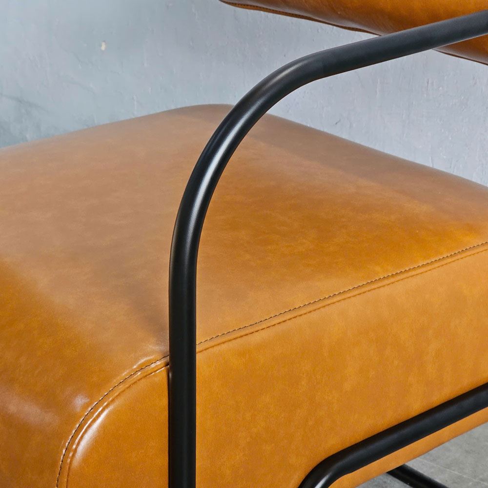 Phần tựa lưng hình trụ tròn, được bọc da màu nâu vàng ấm áp. Thiết kế này không chỉ mang đến sự độc đáo, khác biệt mà còn tạo cảm giác êm ái, thoải mái khi tựa lưng. Phần đệm ngồi cũng được thiết kế với những đường cong mềm mại, ôm sát cơ thể, mang lại trải nghiệm ngồi thư giãn tuyệt vời. Ghế phù hợp với nhiều không gian khác nhau, từ phòng khách, phòng ngủ đến văn phòng làm việc hay khu vực sân vườn. Ghế có thể được sử dụng như một chiếc ghế thư giãn trong phòng khách, một chiếc ghế đọc sách trong phòng ngủ hay một chiếc ghế tiếp khách trong văn phòng.