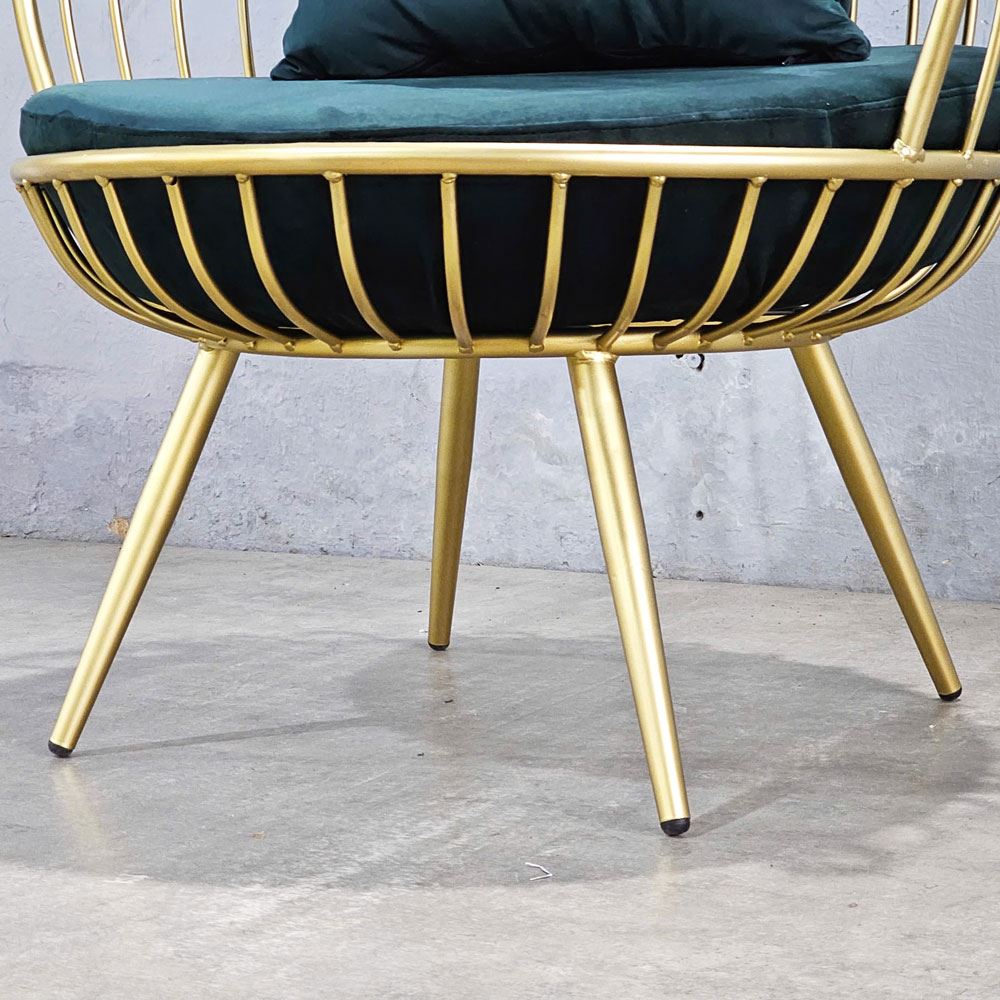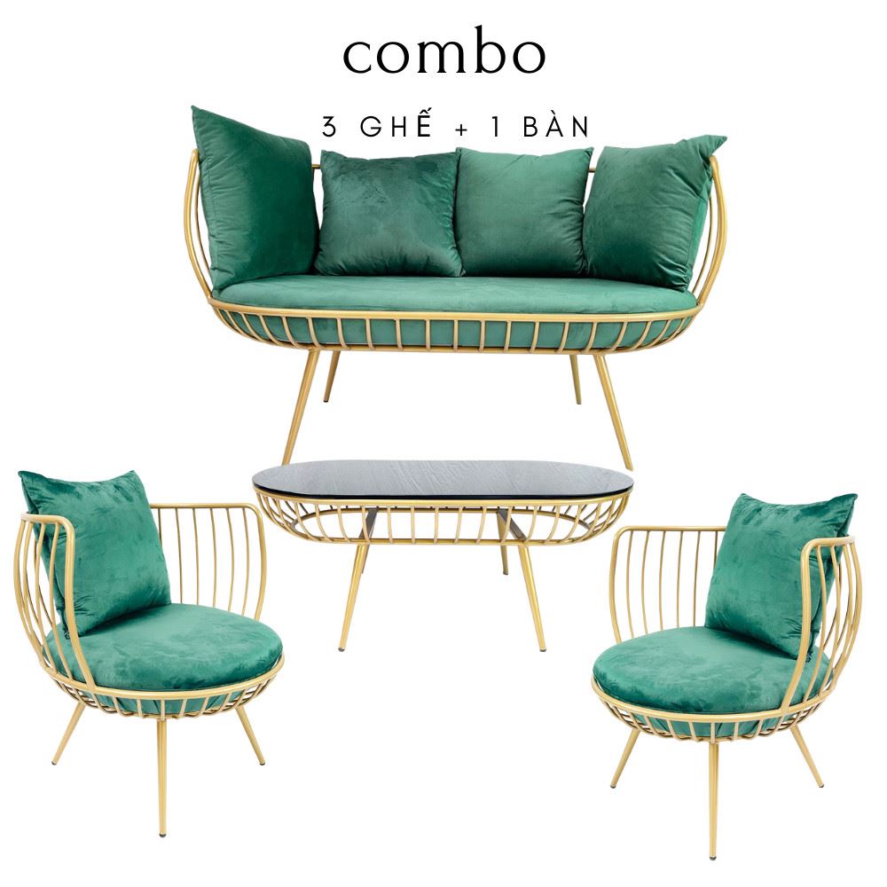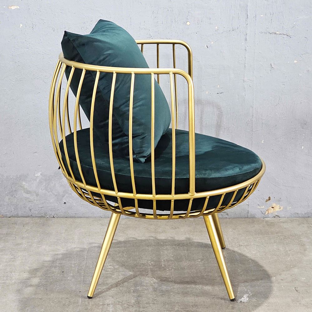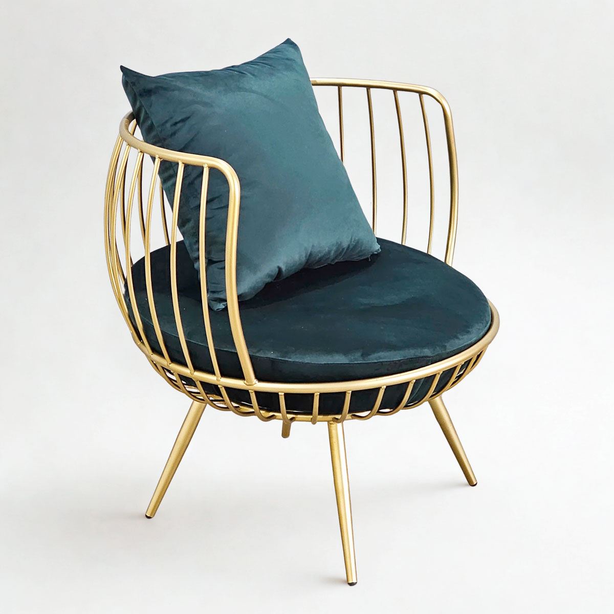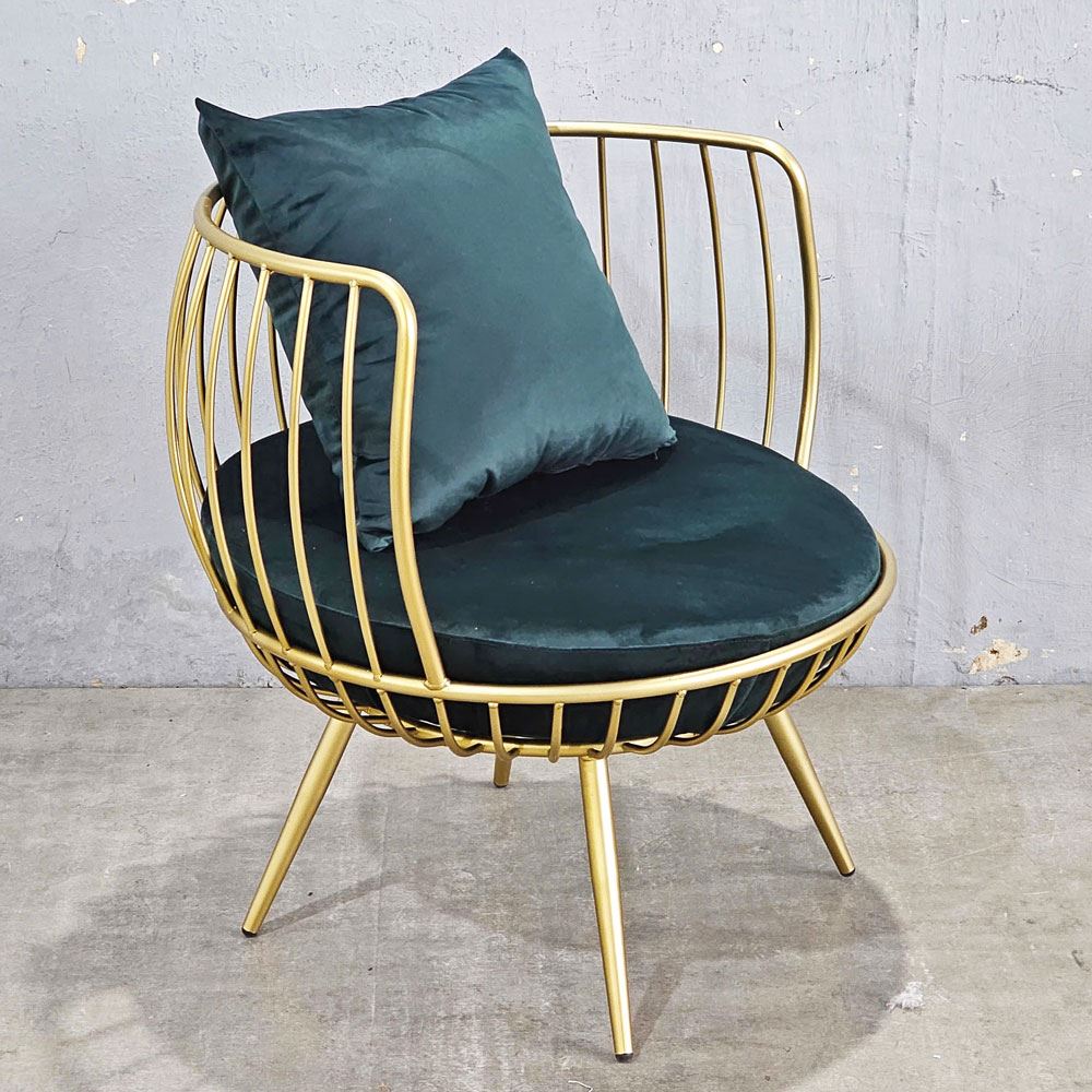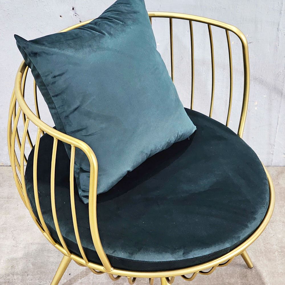 Ghế sofa đơn, ghế thư giãn nệm xanh khung tròn vàng đồng