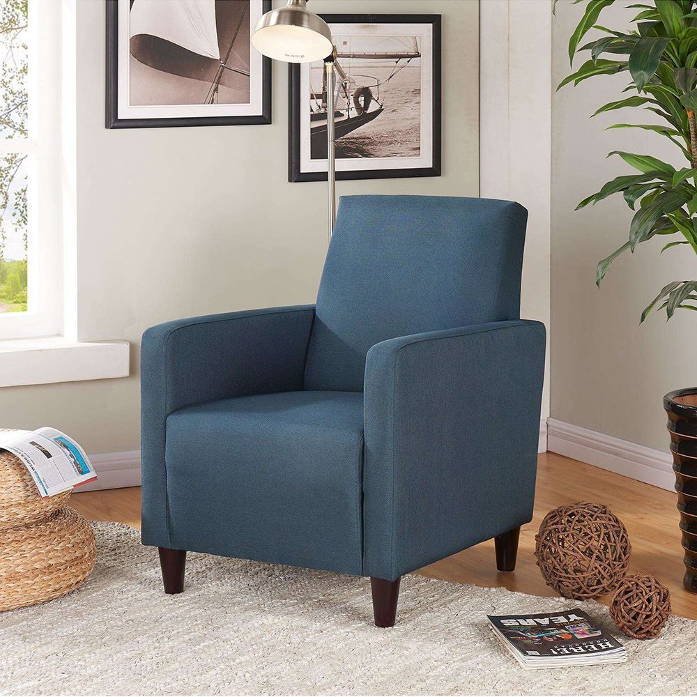Ghế sofa đơn chân gỗ sồi nệm bọc vải xanh