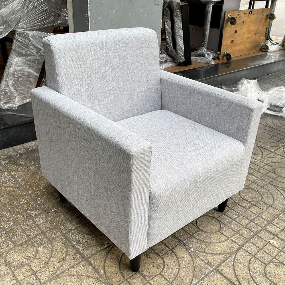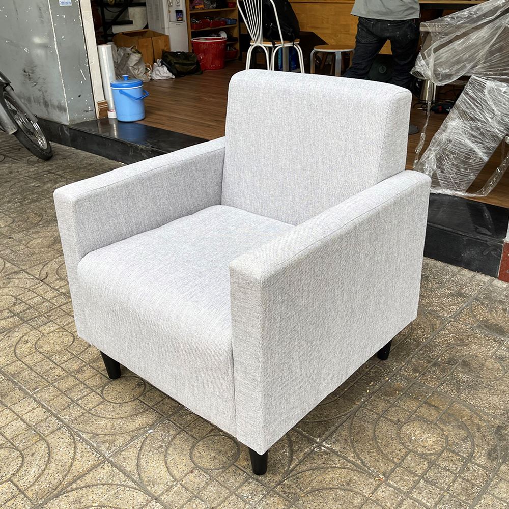 Ghế sofa đơn chân gỗ sồi nệm bọc vải xám
