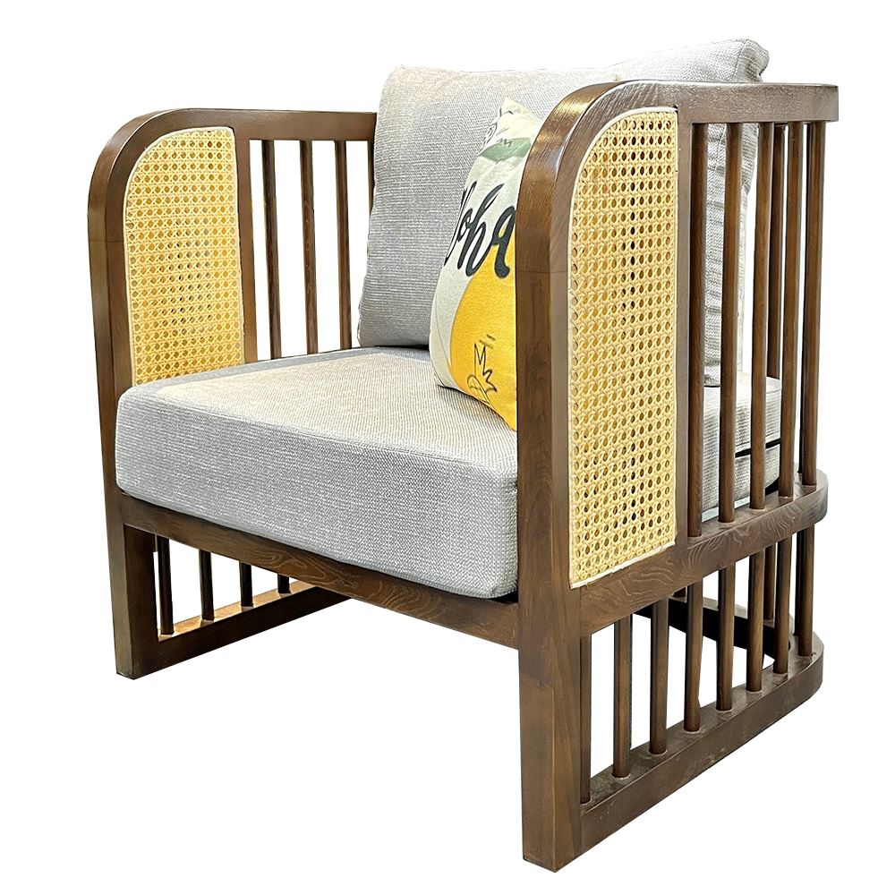Ghế sofa đơn GSD68059 mang đậm phong cách Inchochine gợi ta đến nhữngký ức xa xưa, hoài cổ mang tính nghệ thuật cao. Phần khung ghế được làm từ gỗ Ash (hay còn gọi là gỗ tần bì) màu nâu trầm với điểm nhấn tay ghế viền lưới mây đẹp mắt, những đường cong mềm mại giúp mẫu ghế sonet thanh thoát hơn. Bạn có thể sử dụng ghế riêng lẻ hay kết hợp với ghế sofa băng Sonet thành bộ bàn ghế Indochine cực đẹp mắt phù hợp với hầu hết không gian từ gia đình, nhà ở hay quán cafe, nhà hàng, resort... đậm chất á đông.