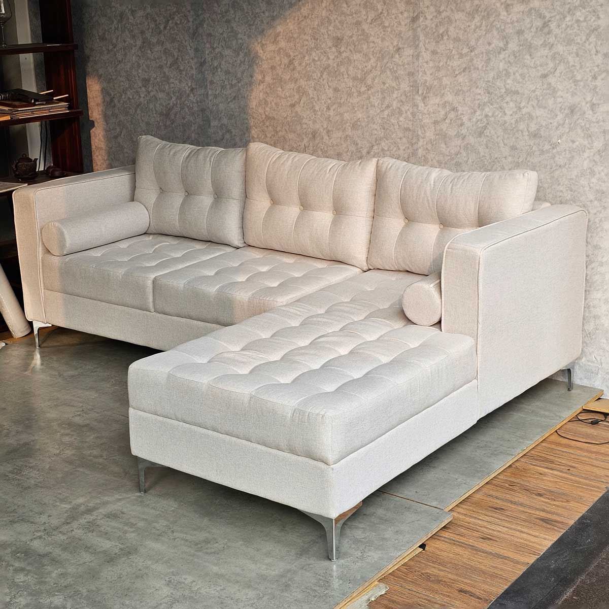Ghế Sofa Góc Chữ L SFL68014 sở hữu một kiểu dáng thanh mảnh, khung ghế được cách điệu bằng cách ngăn ra từng phần riêng biệt khiến cho chiếc sofa nhà bạn trở nên rất khác biệt. Ghế với chất liệu khung gỗ bên trong kết hợp với nệm Mút dày đàn hồi cao và được bọc vải với nhiều màu sắc lựa chọn. Chân sắt xi mạ sáng rất đẹp mắt