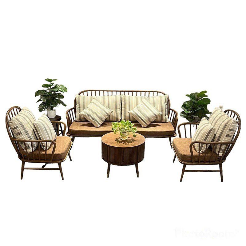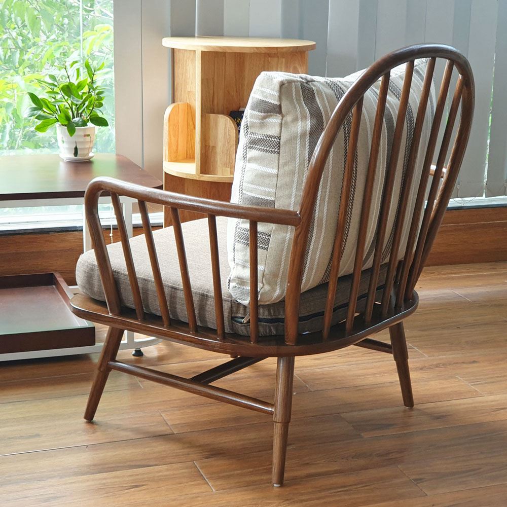 Ghế sofa song trúc đơn khung gỗ Ash GSD68066 với khung ghế là thanh gỗ tiện tròn uốn cong tỉ mỉ tạo nên những đường nét mềm mại, tinh tế. Kích thước ghế rộng rãi kết hợp nệm ngồi và gối tựa lưng êm ái tạo sự thoải mái giúp bạn tận hưởng, thư giãn khi ngồi. Khung gỗ tần bì cao cấp (gỗ Ash) sơn màu nâu tạo cảm giác vintage gợi đến những ký ức xưa cũ, gỗ được xử lý qua các bước kỹ càng chống cong vênh, khả năng chịu lực tốt và tính thẩm mỹ cao với đường vân hiện lên rõ nét tăng giá trị thẩm mỹ.