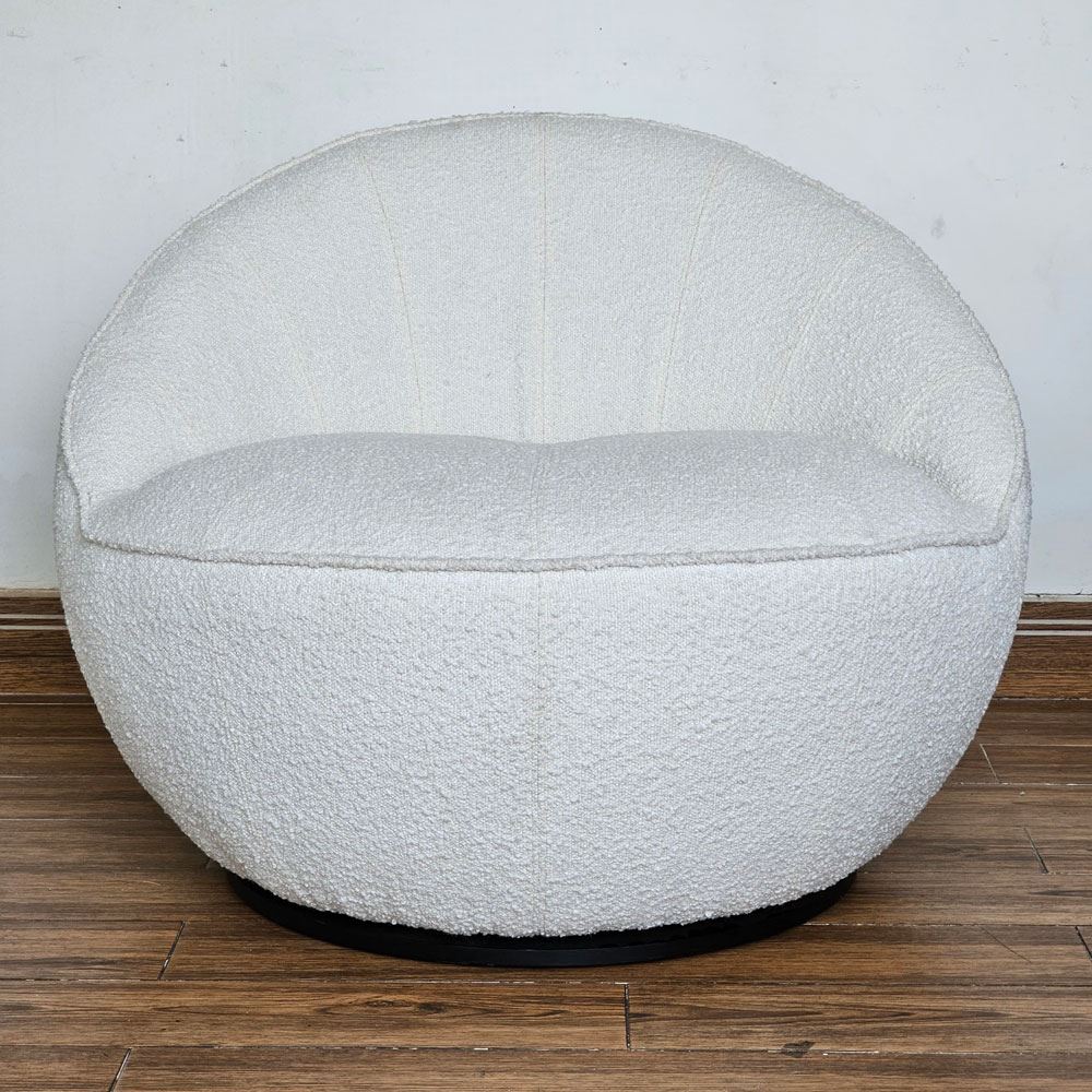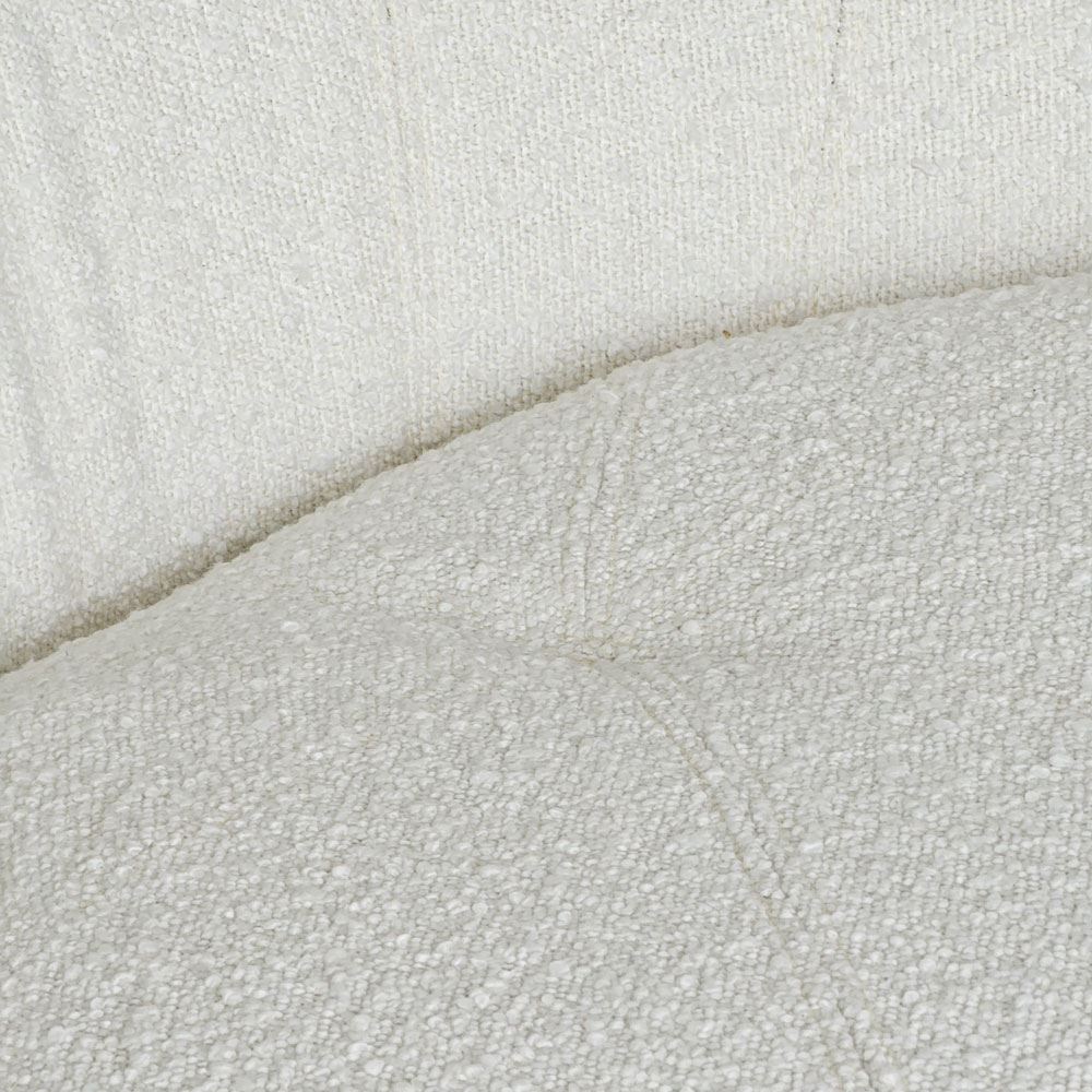 Bề mặt ghế ELEGA GSD68082 được phủ bằng chất liệu Vải Bouclé, đây là một loại vải được dệt từ sợi Bouclé, sợi này có các vòng xoắn nhỏ giúp tạo ra các gợn sóng trên bề mặt vải, nó có tính thẩm mỹ cao, tạo cảm giác sang trọng, quý phái. Một ưu điểm nữa của vải Bouclé là có bề mặt vải có các gợn sóng nhỏ, tạo cảm giác mềm mại, êm ái. Vải Bouclé có độ bền rất cao, không dễ bị xù lông hay rách.