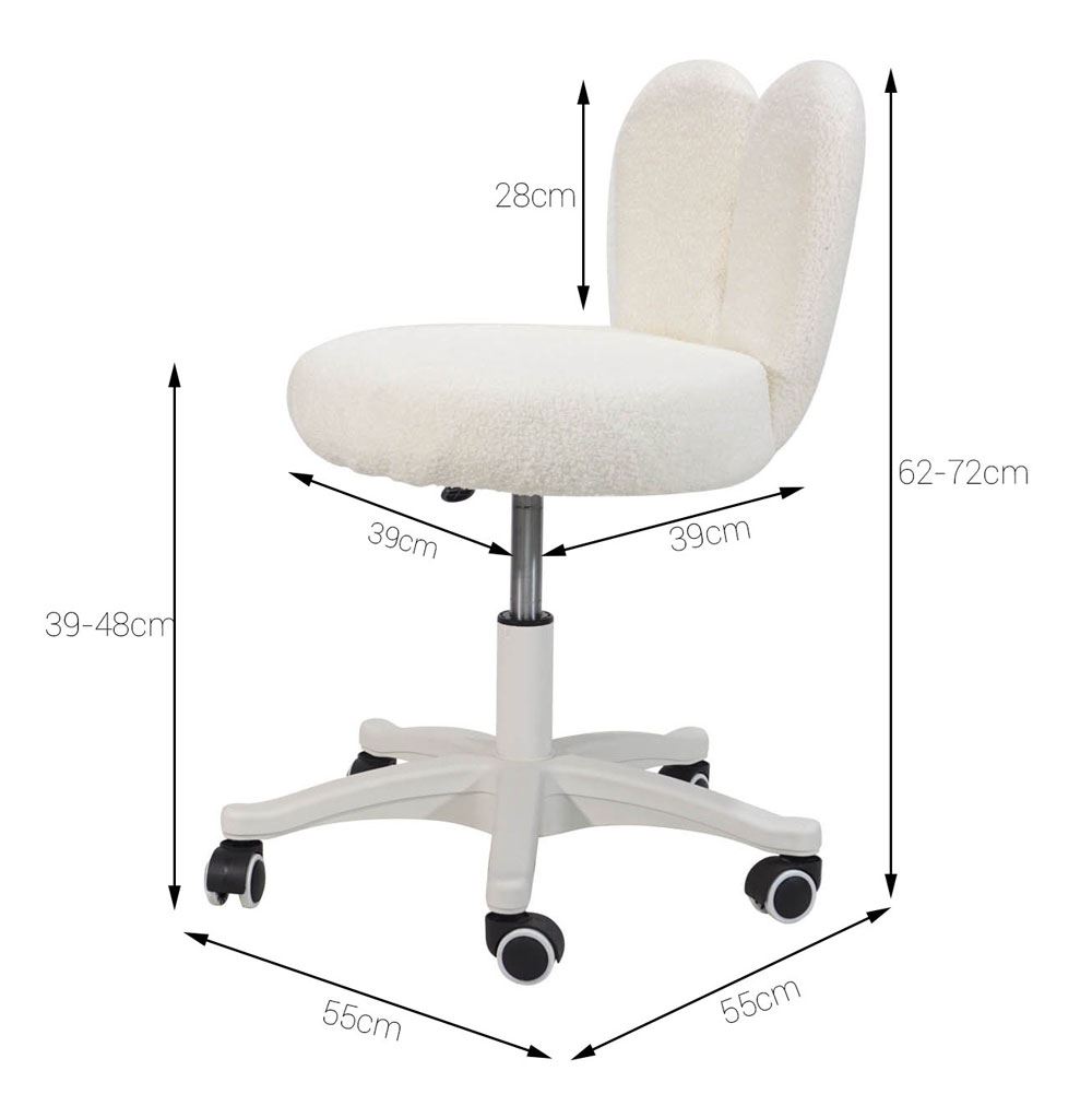 Ghế tai thỏ GAK412 là mẫu ghế có thiết kế độc đáo và đáng yêu. Điểm nhấn chính của ghế là phần tai thỏ xinh xắn gắn ở phần lưng, tạo nên một vẻ ngoài đáng yêu và dễ thương. Ghế có chân xoay, giúp người sử dụng dễ dàng thay đổi hướng và di chuyển linh hoạt trong không gian. Bề mặt ghế được bọc bằng nệm lông cừu, tạo cảm giác mềm mại, êm ái và ấm áp. Lông cừu mang đến một vẻ đẹp tự nhiên và sang trọng, cùng với màu sắc ấm áp và tinh tế, đồng thời tăng thêm sự nữ tính và phong cách đáng yêu cho ghế.
