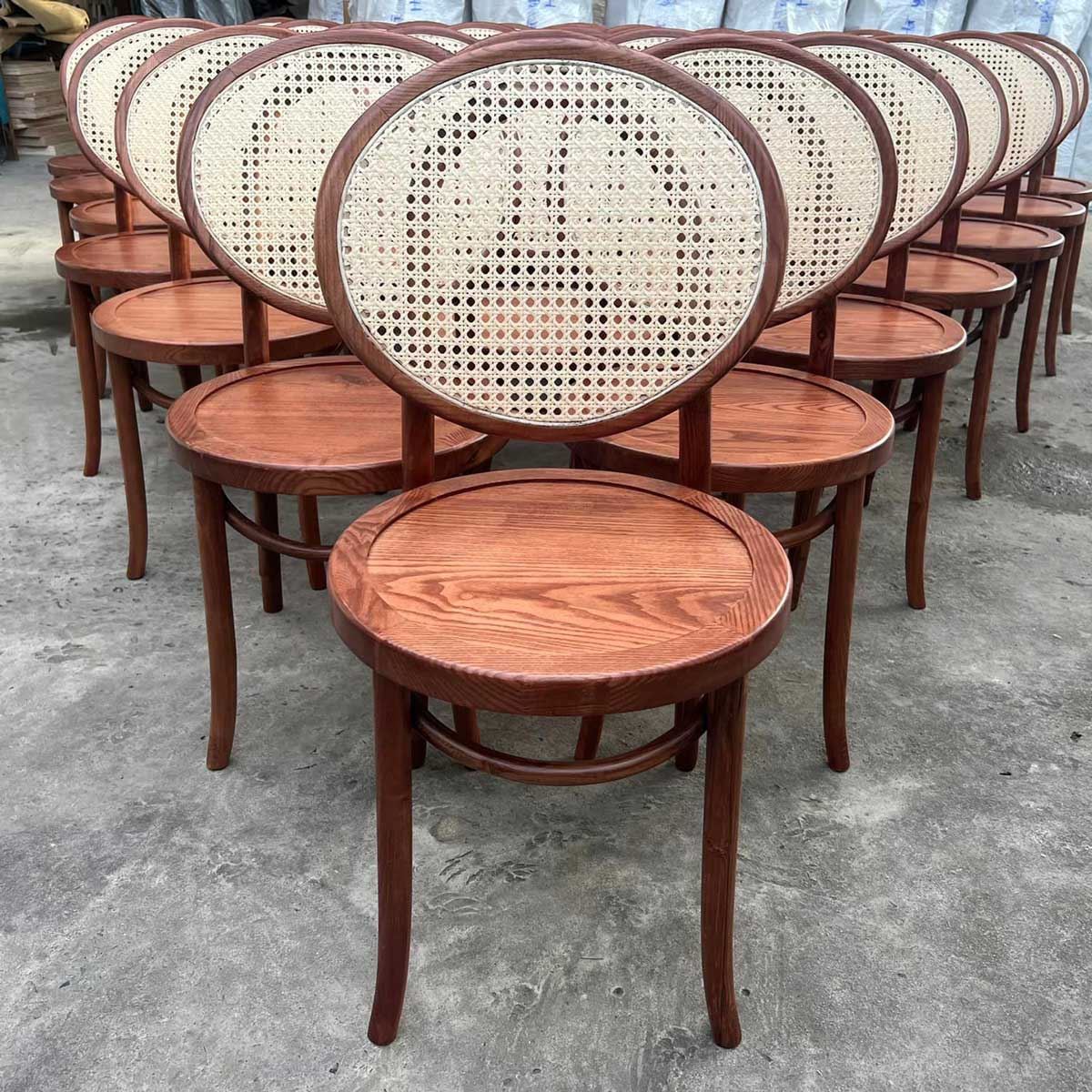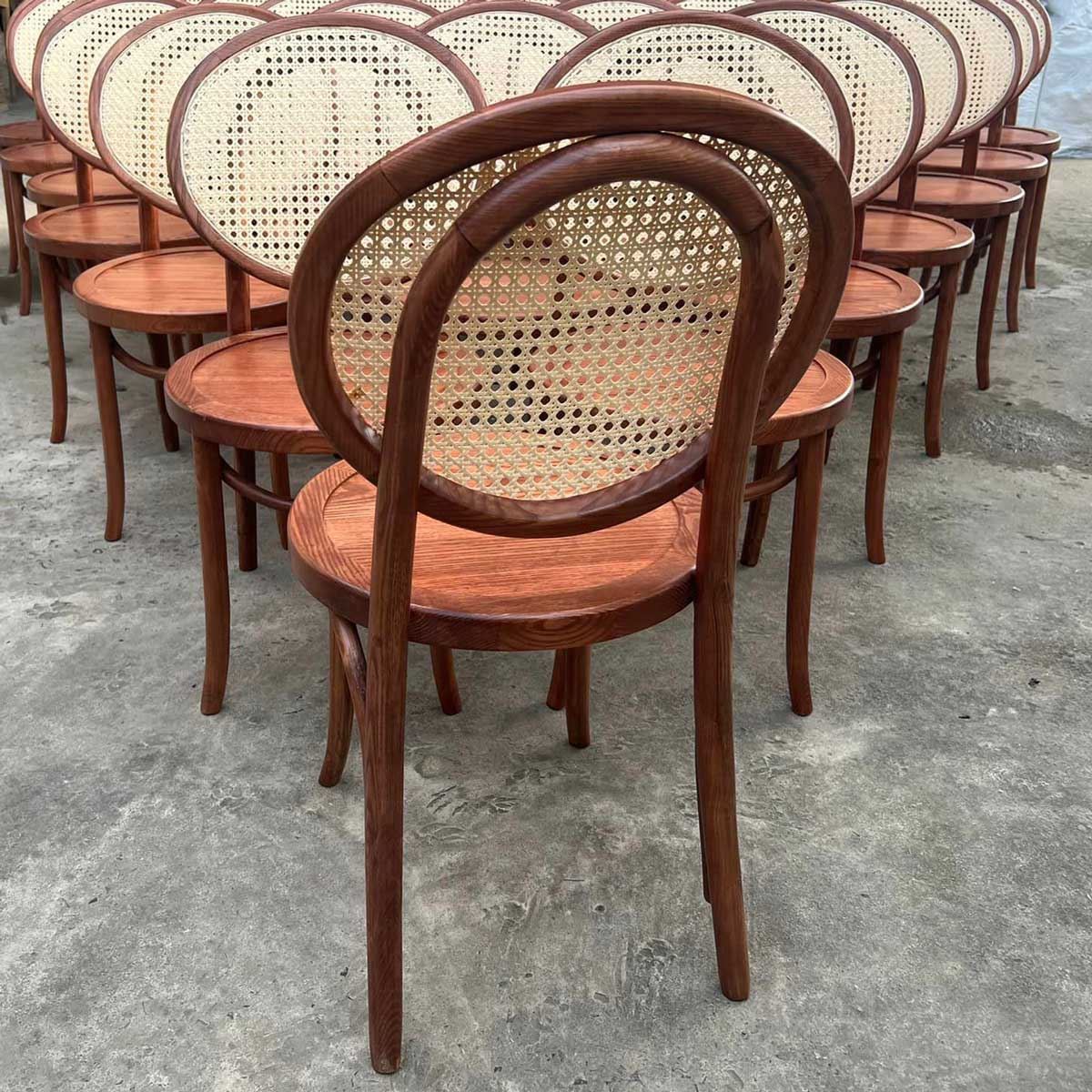 Kỹ thuật này cho phép ông tạo ra những chiếc ghế có cấu trúc liền mạch, thanh mảnh nhưng vô cùng chắc chắn. Phần lưng gỗ uốn cong là một đặc điểm nổi bật của ghế Thonet. Không chỉ mang lại vẻ đẹp thẩm mỹ, nó còn hỗ trợ tốt cho phần lưng của người ngồi, tạo cảm giác thoải mái và dễ chịu. Lưng ghế được làm từ lưới mây đan kiểu mắt cáo, mang đến sự thoáng khí và êm ái cho người ngồi. Lưới mây đan cũng tạo nên điểm nhấn về vẻ đẹp tự nhiên, hòa quyện với màu sắc của gỗ, tạo nên một tổng thể hài hòa và tinh tế.