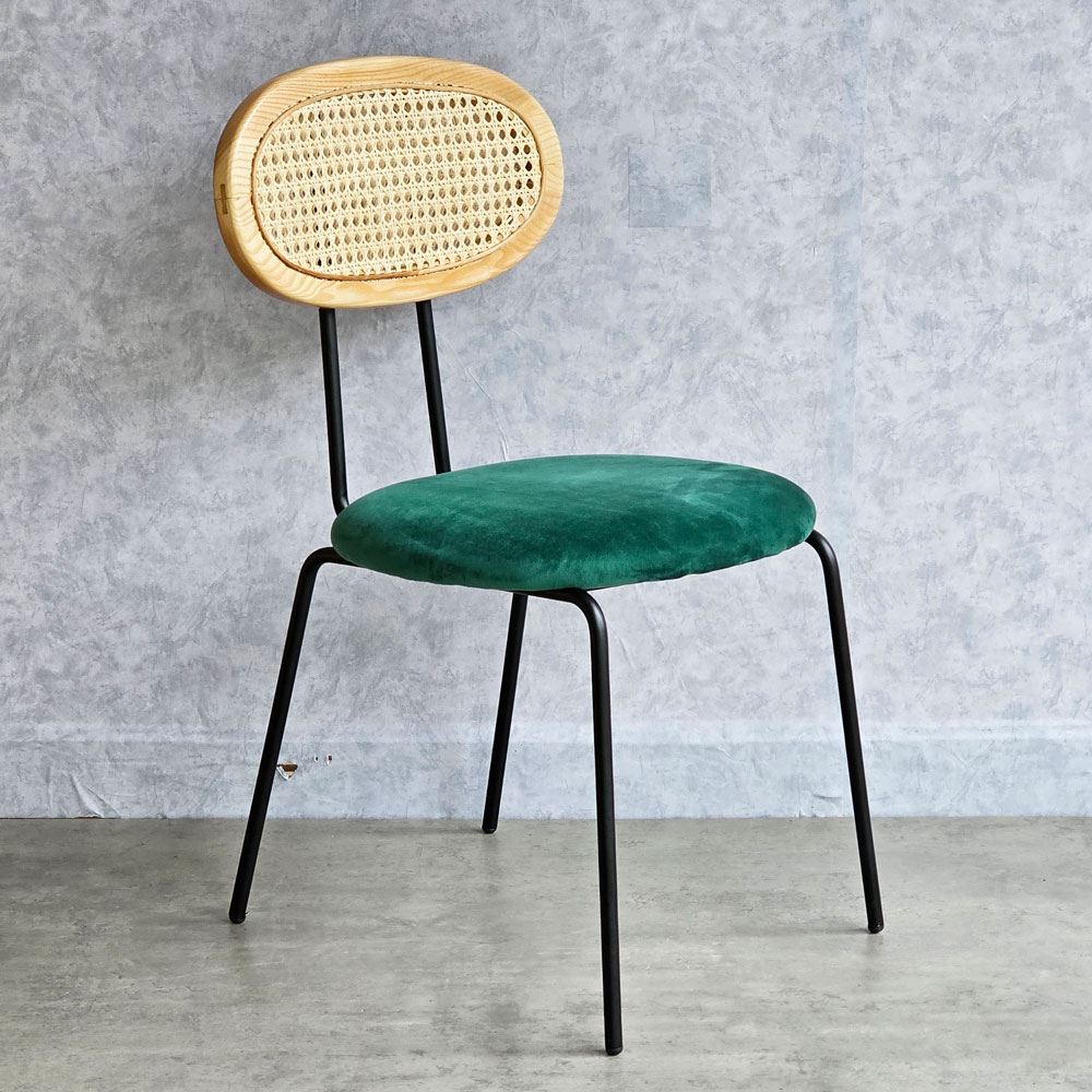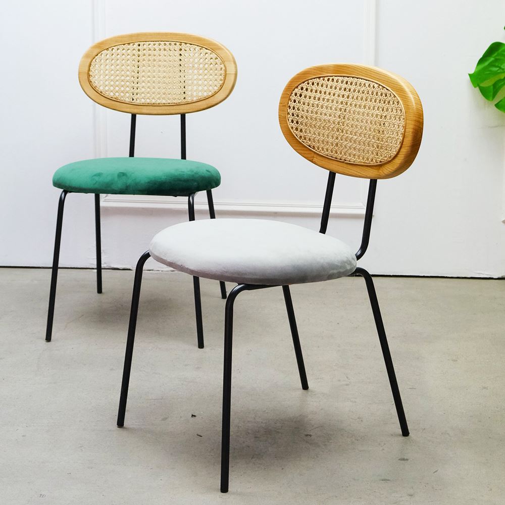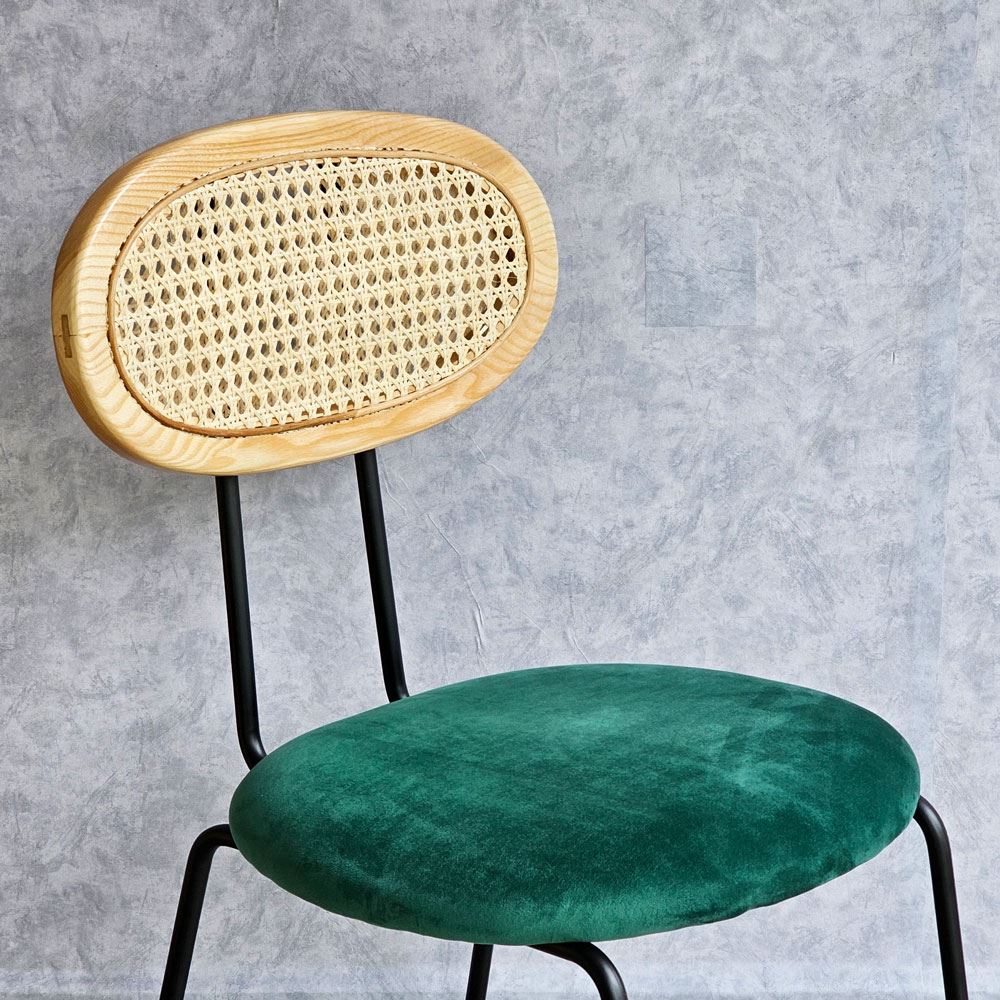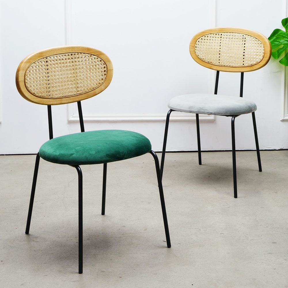 Ghế tựa lưng nệm nhung GAK198 có thiết kế đẹp mắt với phần lưng tựa bằng gỗ mây, nệm nhung êm ái mang đến sự thoải mái khi ngồi, khung chân sắt có khả năng chịu lực tốt, bề mặt sắt sơn tĩnh điện chống rỉ sét. Ghế GAK198 là sự kết hợp hài hoà của các chất liệu khác nhau, kiểu dáng hiện đại được sử dụng trong nhiều không gian gia đình như ghế bàn ăn, ghế làm việc,...hay tại không gian quán cafe, nhà hàng
